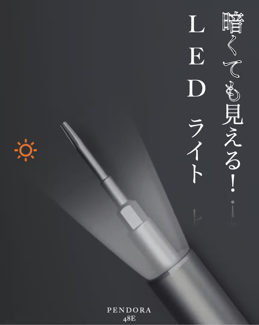ドライバーの根本からLEDライトが光って手の影で隠れてしまう時にも、ライトで照らしてより確実に作業を進められます。
