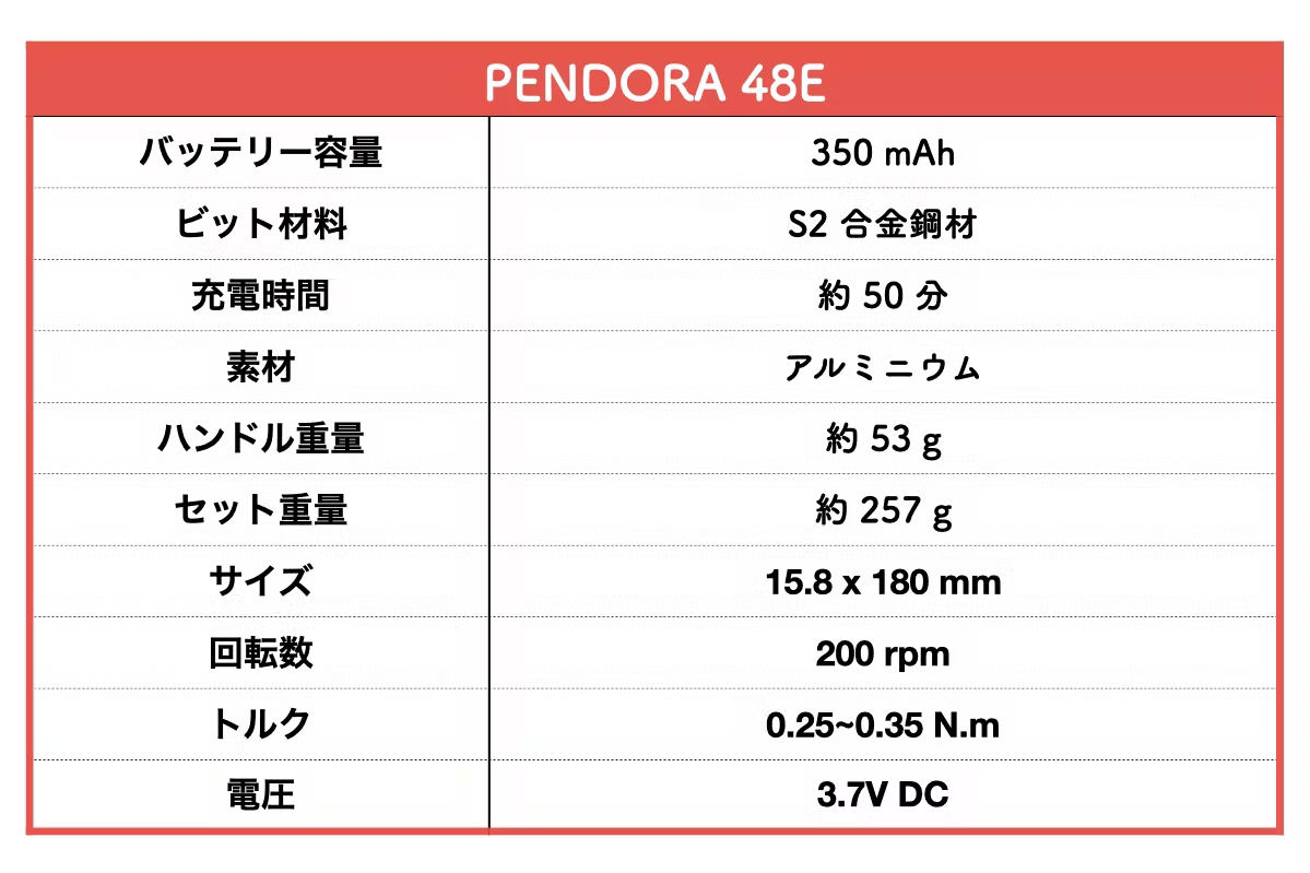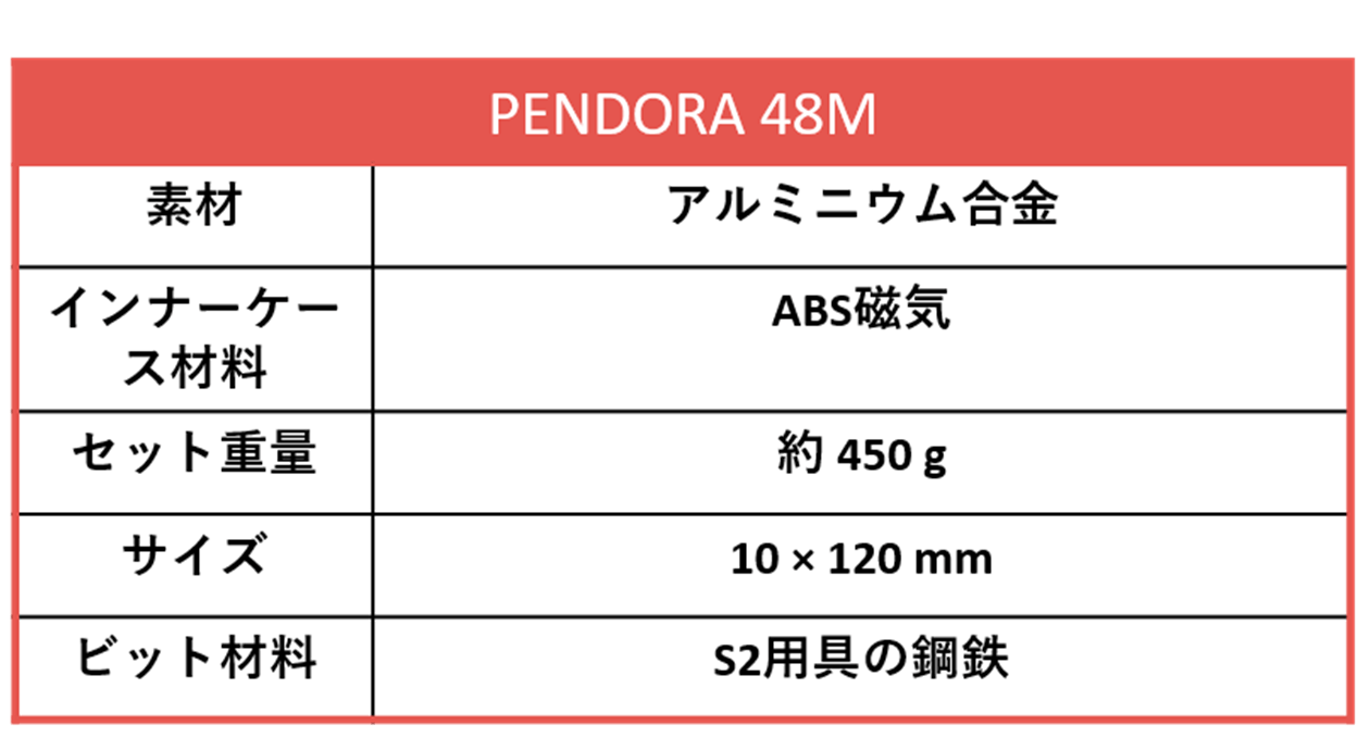 上記の写真のセットツールはPENDORA 48E SETのみ入っています。ご注意ください。