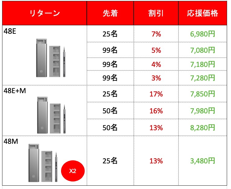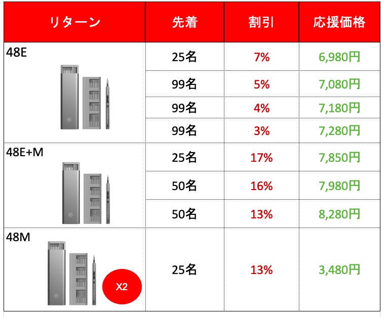 みなさん、こんにちは。BRIGHT DIYです。本日は皆さまに新しいプロジェクトを紹介させて頂きます。最大43%OFF!!!さらに、公開から5日間限定で使える15%OFFクーポンを発行させて頂きました。━━━━━━━━━━━━━━━━━━クーポンのURLはこちら↓https://camp-fire.jp/projects/814601/view?ctoken=FbK1juFQvCgkUzYiクーポンは3月30日~4月3日限定でご使用頂けます。━━━━━━━━━━━━━━━━━━DIY好きのみなさん、金属まで穴あけができる精密ドリルはお持ちですか?木材から金属まで自由自在に加工ができて、穴あけ精度も高いコードレスミニルーター「BOLTZ」です!プロジェクト概要キャンペーン期間 2025年3月30日~2025年5月10日プラットフォーム CAMPFIREキャンペーンURL https://camp-fire.jp/projects/view/814601※プロジェクト公開後から閲覧可能になります。2025年3月30日の8時からプロジェクト公開となります。数に限りがございますので、早い者勝ちです!!!BOLTZ DIY TOOL KIT 1点のご支援の場合は先着80名様に限り20%OFFの早期リターンを適用させて頂きます!※早期リターンは在庫がなくなり次第終了となります。BOLTZ DIY TOOL KIT (基本セット):BOLTZ DIY TOOL ADVANCED KIT (アドバンスセット): もっと見る