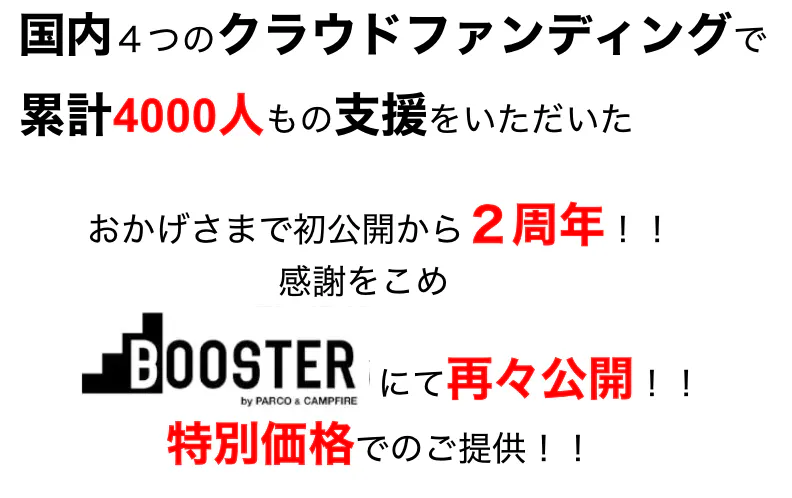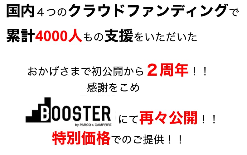 今回、2周年記念として、 少しでも多くの皆さまにお得な価格でご提供出来るよう、あらためてBOOSTER様で公開させていただけることになりました。