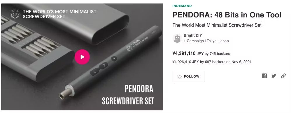 今回紹介したPENDORA Seriesスクリュードライバーは格好良いデザインのみならず、持ち運びやすく、どこでもどんなものでも対応できるようなものをみんなに使ってみてもらいたいです。PENDORA Seriesスクリュードライバー通じて、DIYの苦労、大変、面倒のイメージをなくし、その代わりに楽しさ、便利さを思わせたいです。