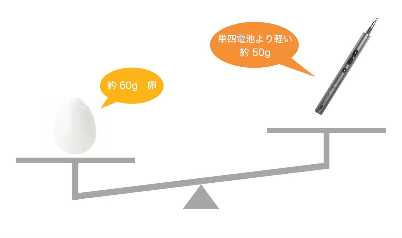 本体の重さは約卵1個分。また直径16mmスリムなデザインなので、ペンのようにグリップできます。