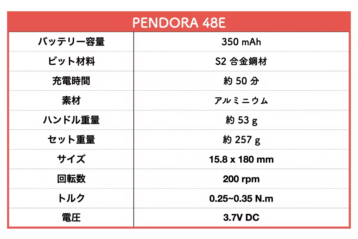 【 PENDORA 48E SETの付属品】