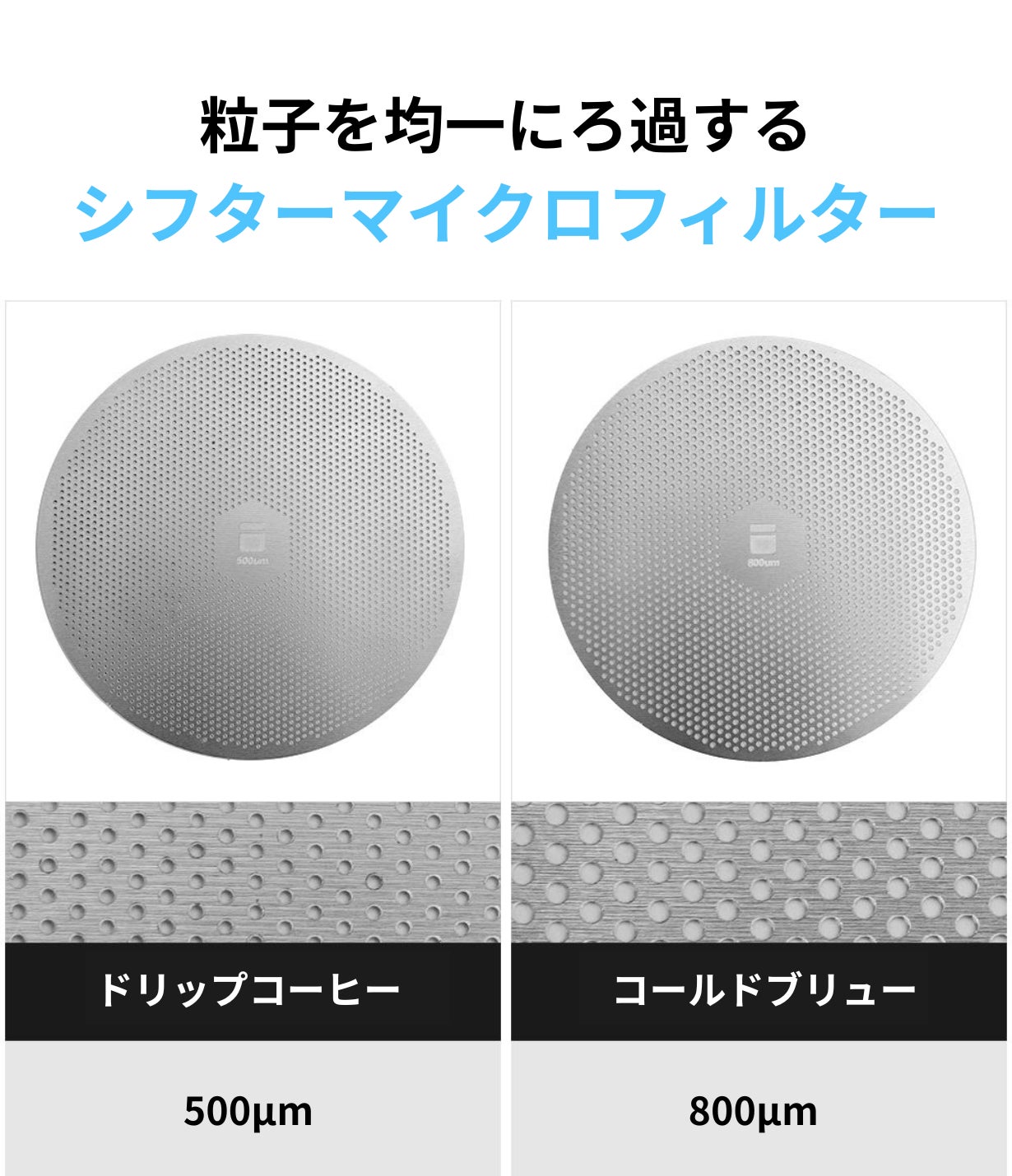 ワンクリックで真空を作る「キャニスター」とコーヒーの微粉を取り除く「シフター」で香り豊かで雑味のないあなた史上最高の味わいのコーヒーに。