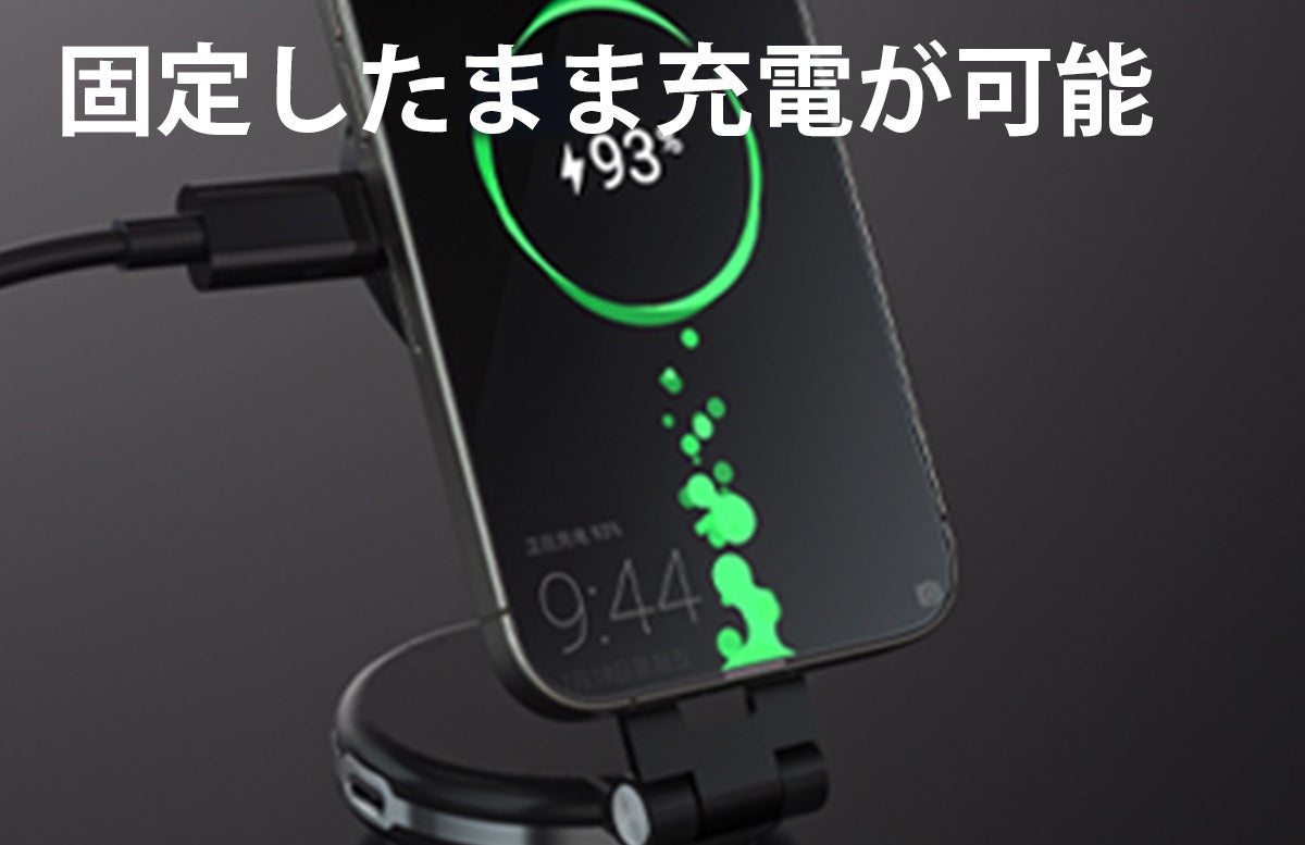 第2弾・固定したままワイヤレス充電OK!真空&磁気吸着式折りたたみスマホホルダー