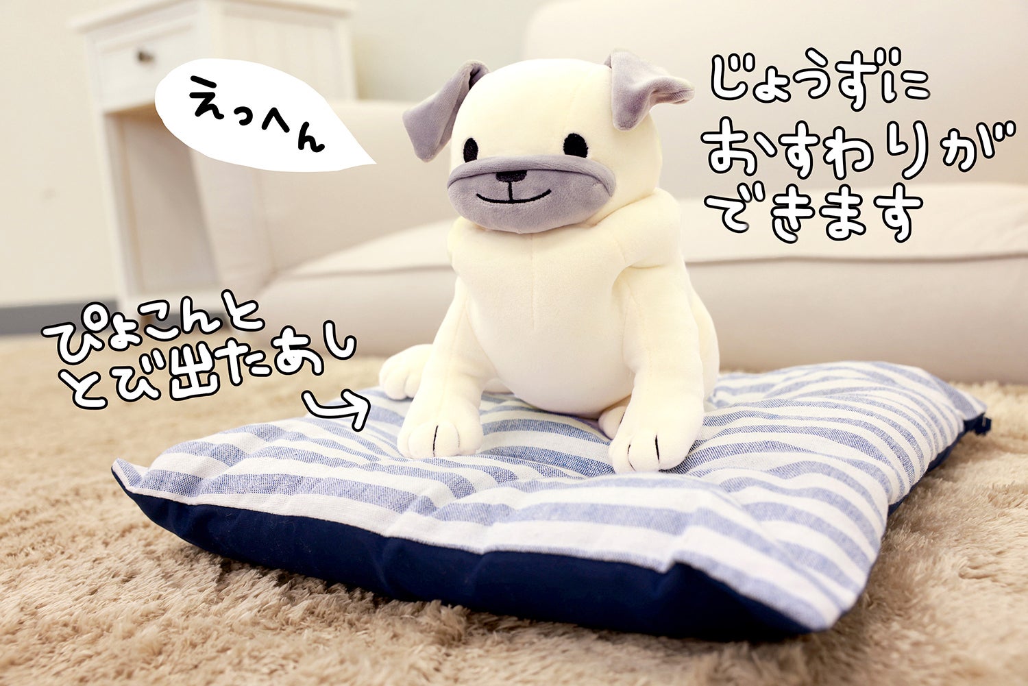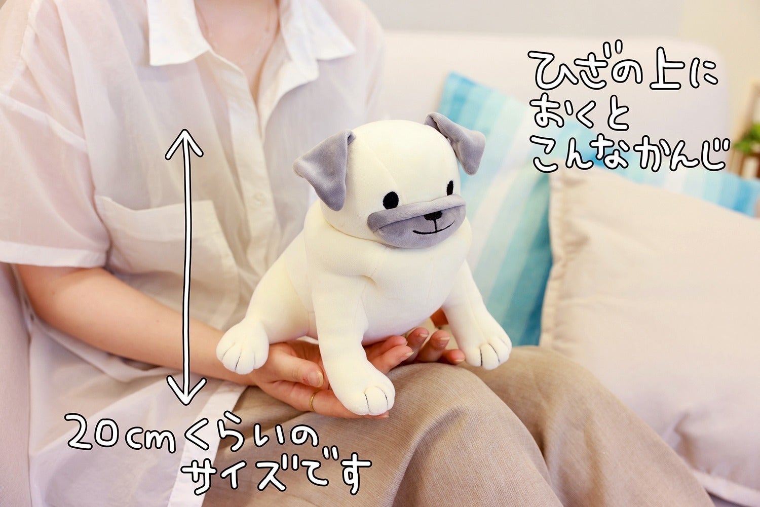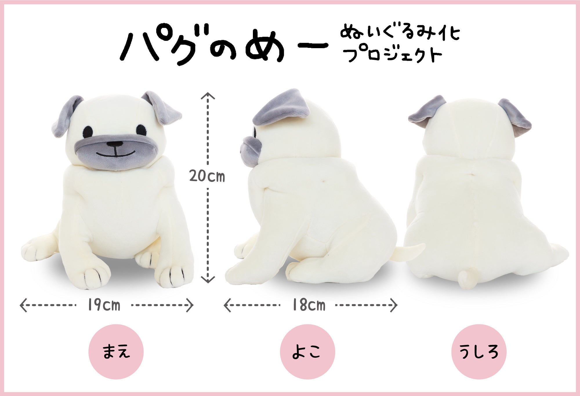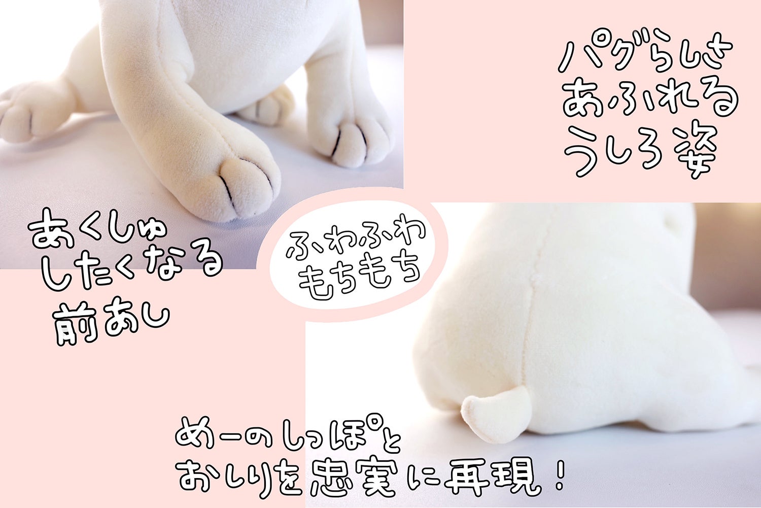 モチモチでふわふわ、パグらしいボディとめーちゃんらしい優しい雰囲気を忠実に再現!