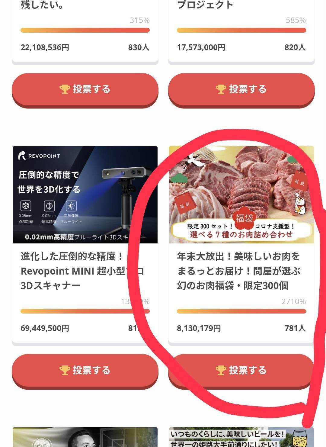 肉福袋が、投票上位のプロジェクトに選出された場合は