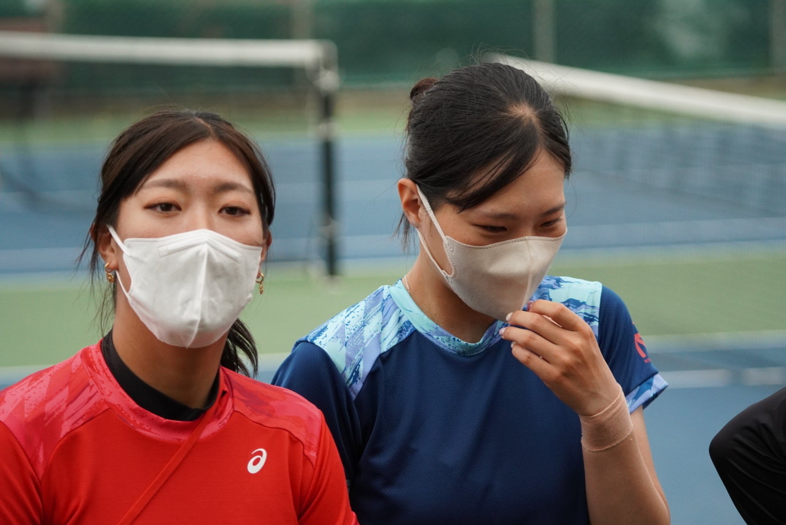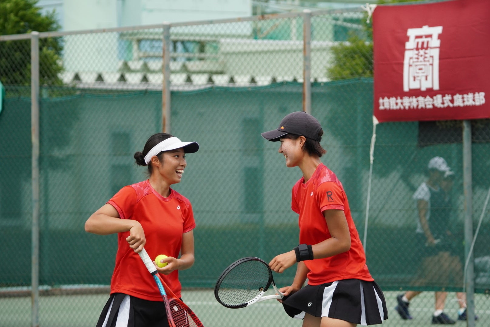 ダブルス1番手に古賀(4回・経済)、横井(3回・薬学)組、2番手に岡山(3回・経済)、芹川(1回・経済)組が入りました。