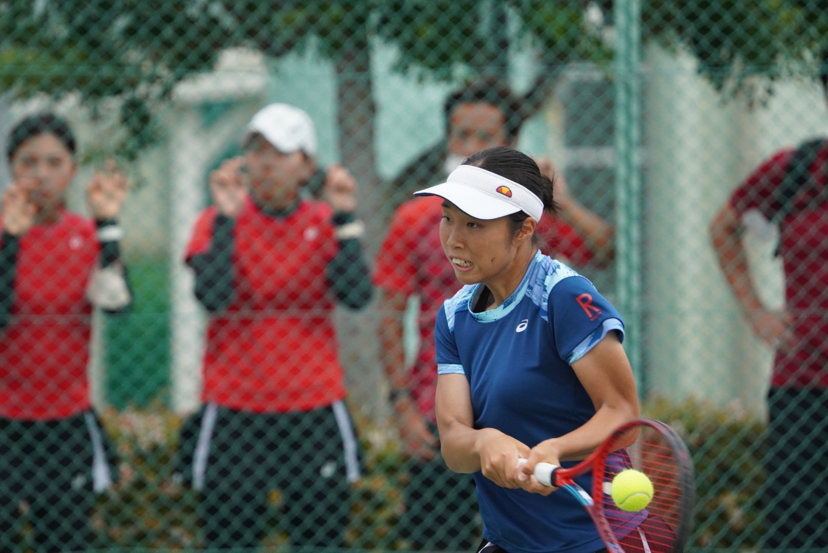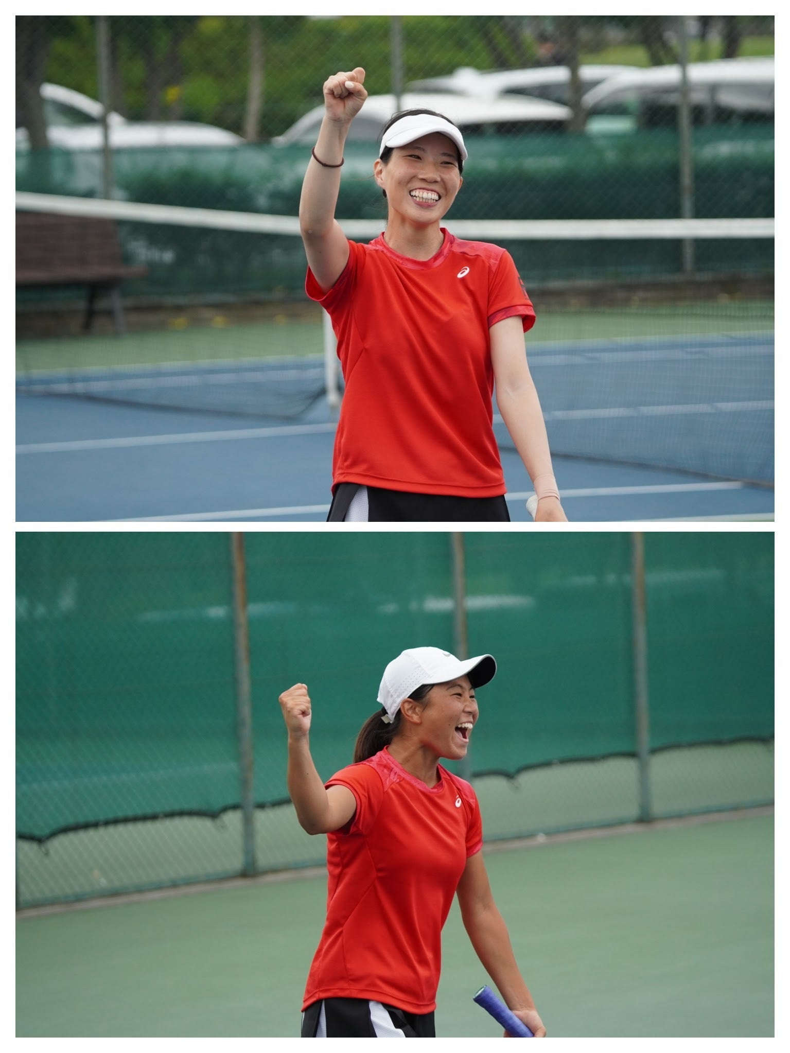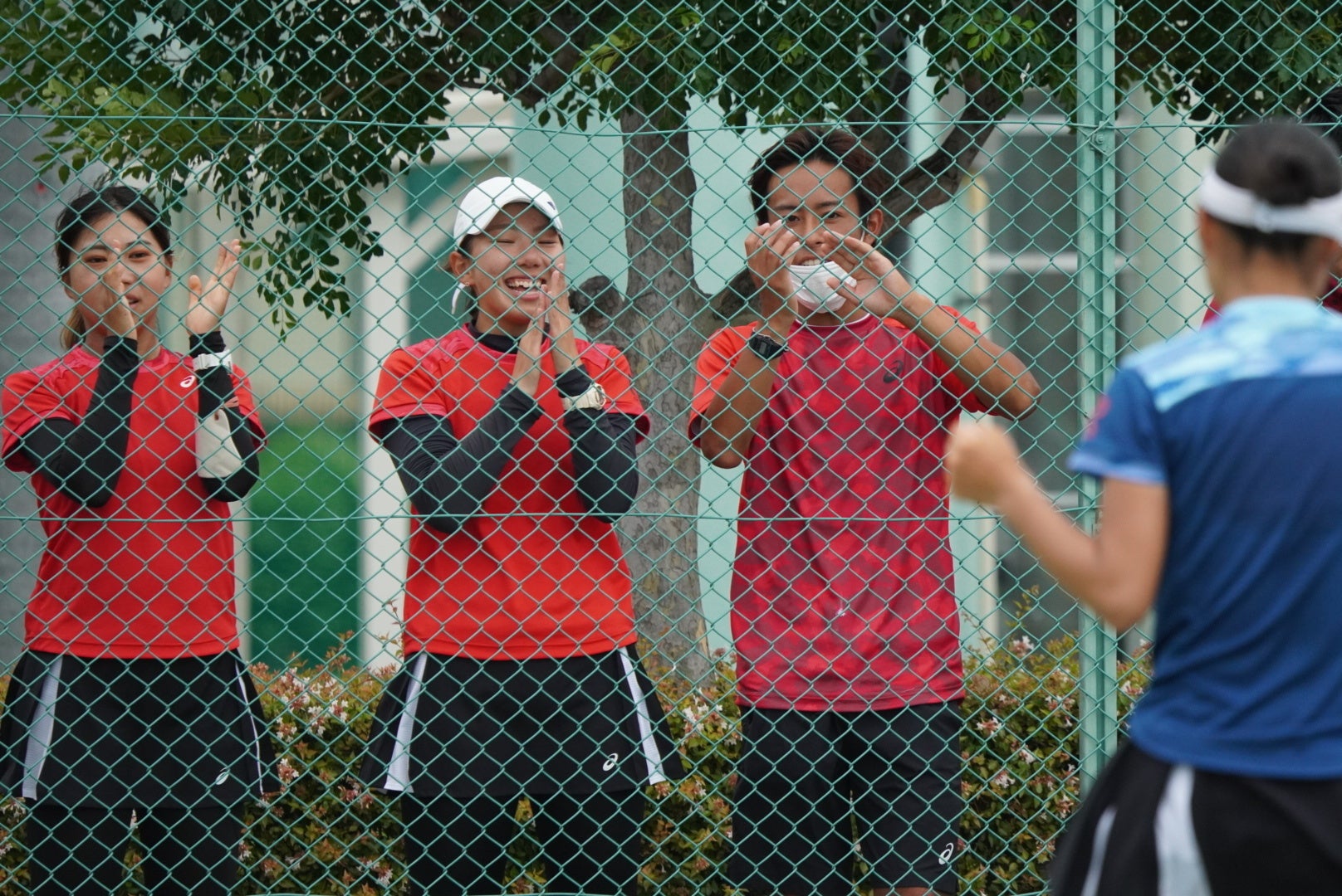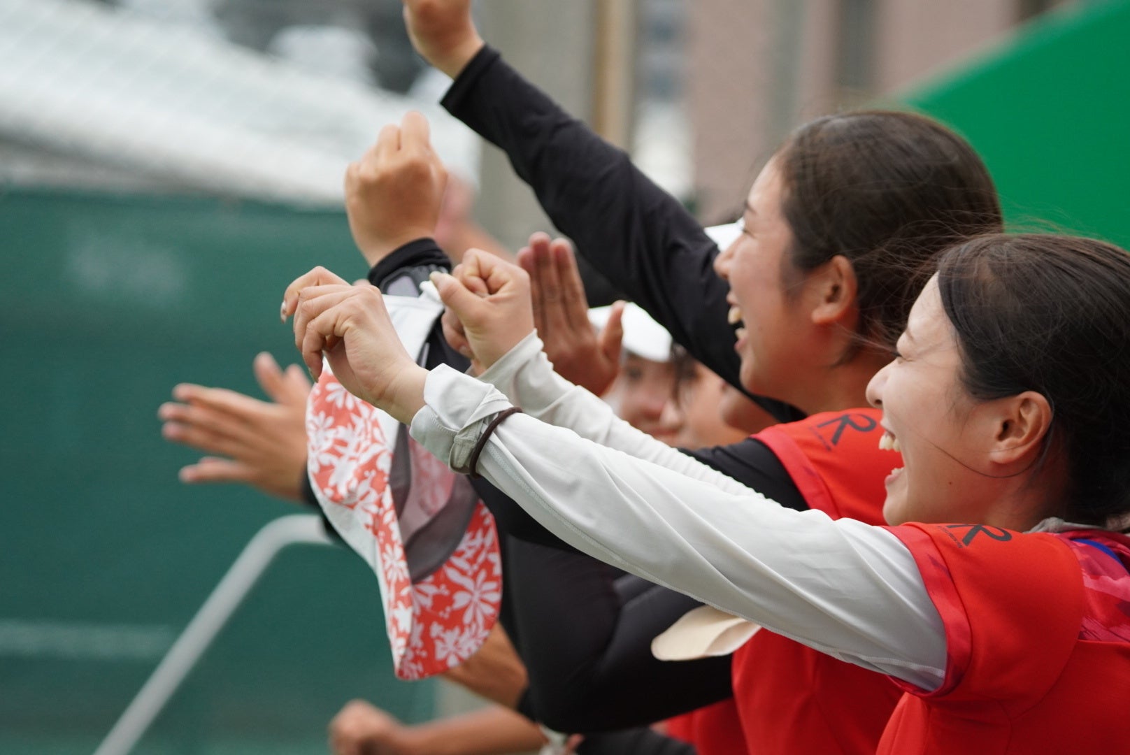 横のコートでの熱戦に応えるように、古賀選手は2セット目も巧みな戦術と粘りのストロークでポイントを重ね、6-1で2セット目を勝ち取り、一部昇格を決めました!