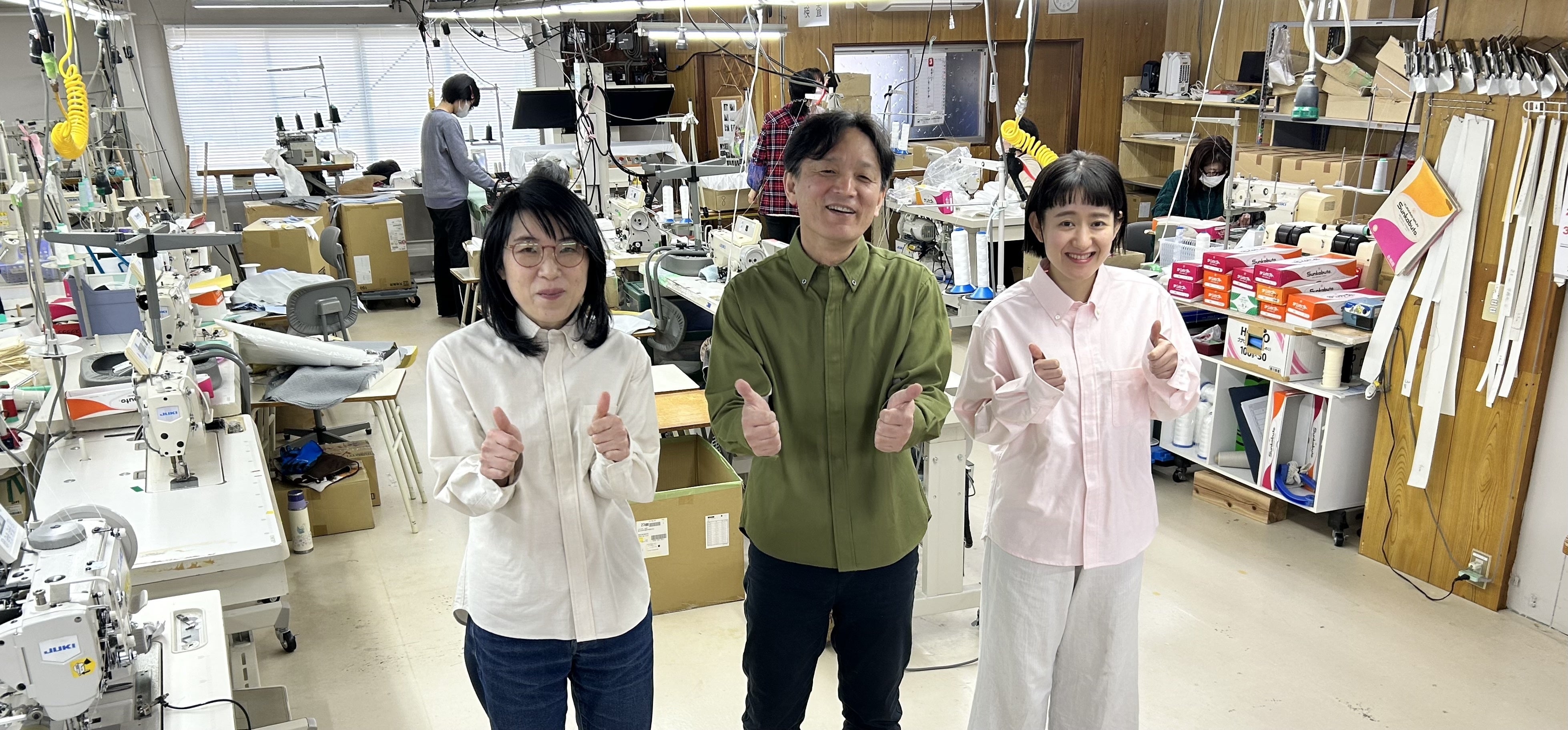 当社は、セレクトショップの皆様やデザイナーの方がオリジナルで作成される洋服を自社にて一貫で縫製しています。自社内に、デザイン・イラスト・パターンメイク・裁断・縫製・仕上げの部門を持っています。縫製するスタッフは、地元島根出身のメンバーで行っております!洋服作りが好きなスタッフが思いを込めて一つ一つ丁寧に作成しています。