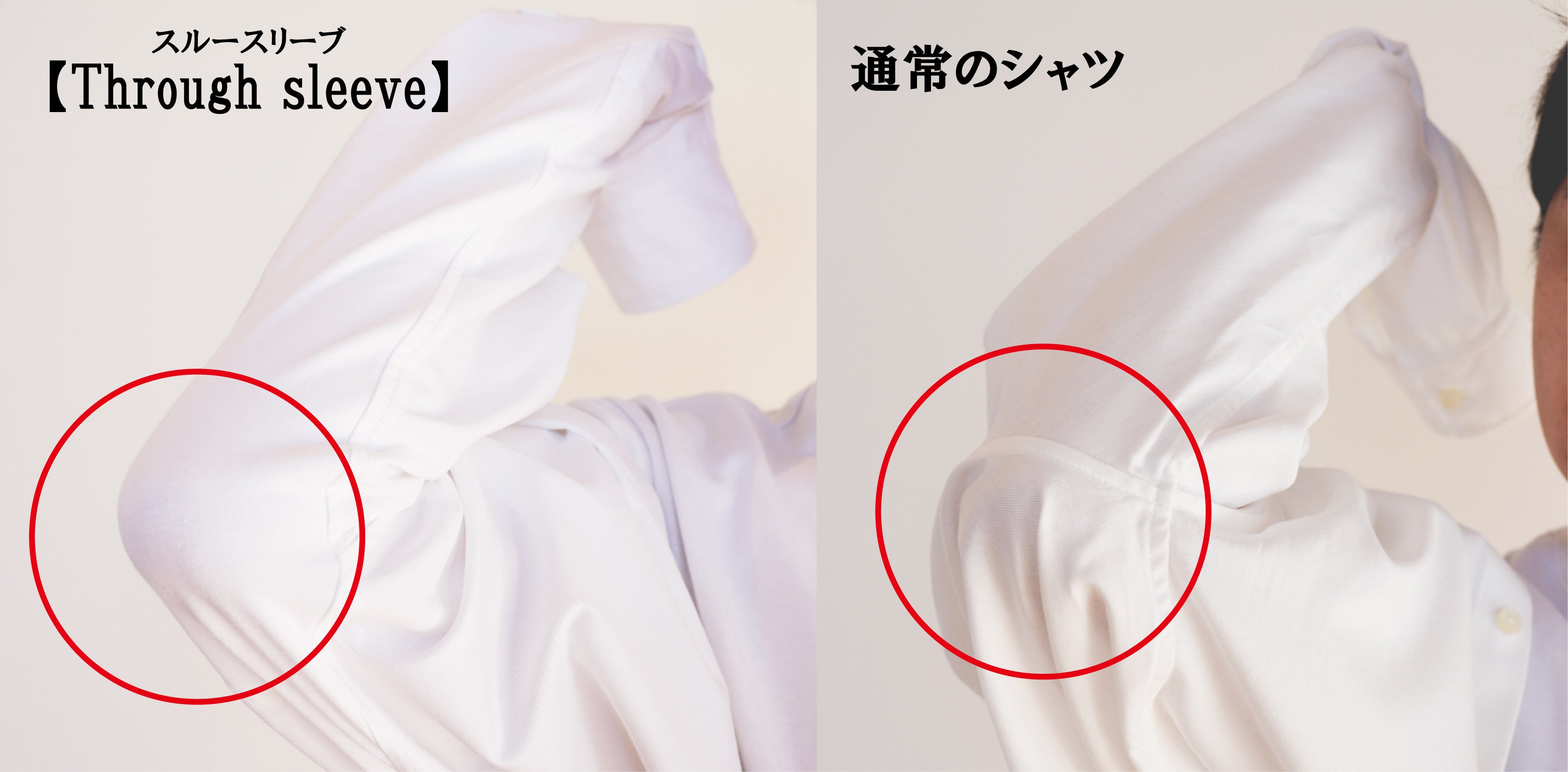【Through sleeve】(スルースリーブ)の簡単に着用できる【3つの秘密】について1つずつご説明いたします。