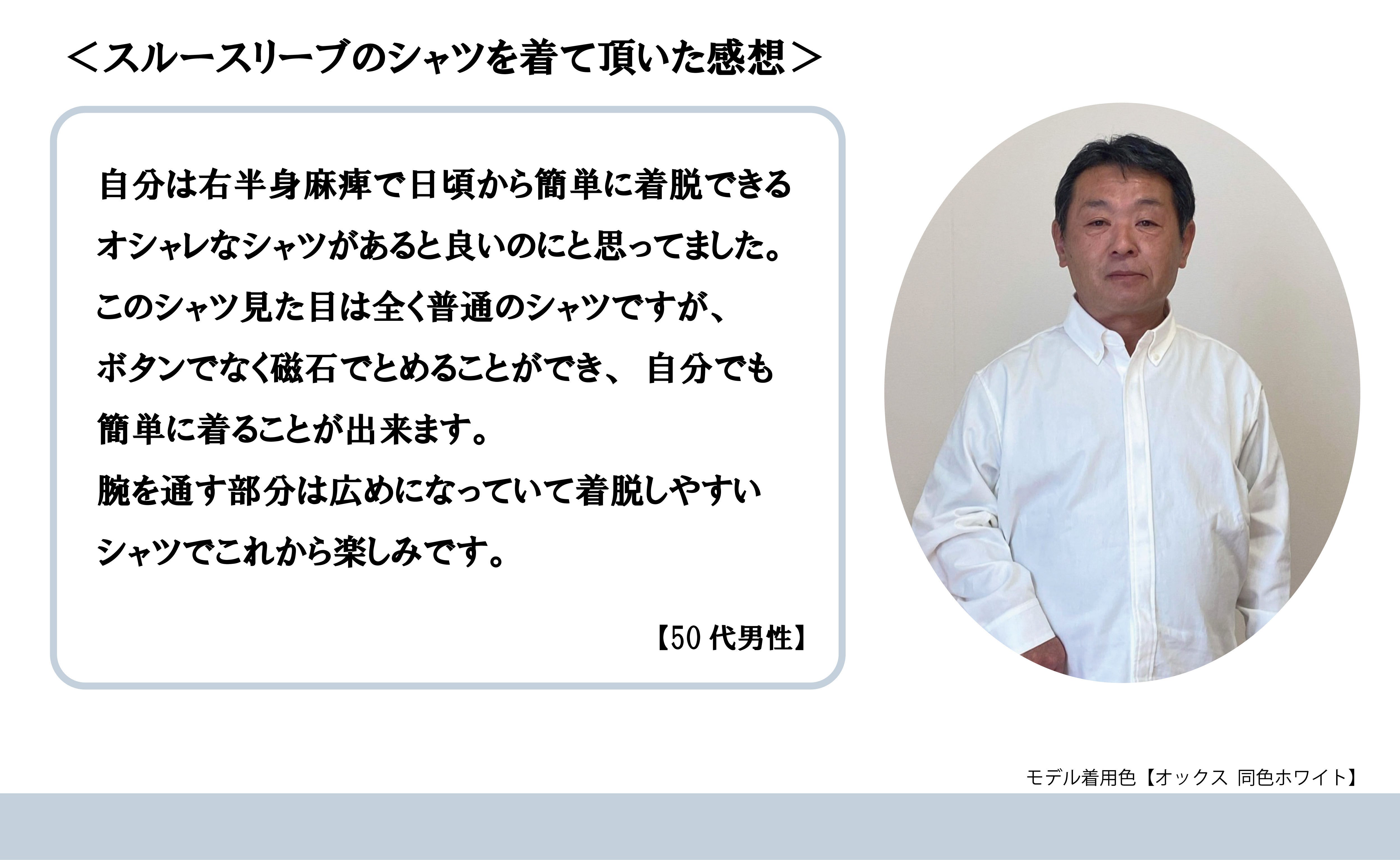 また寝たきりの方も、ほかの方が介助することでより簡単にシャツを着てファッションを楽しむことが出来た事例もあります。