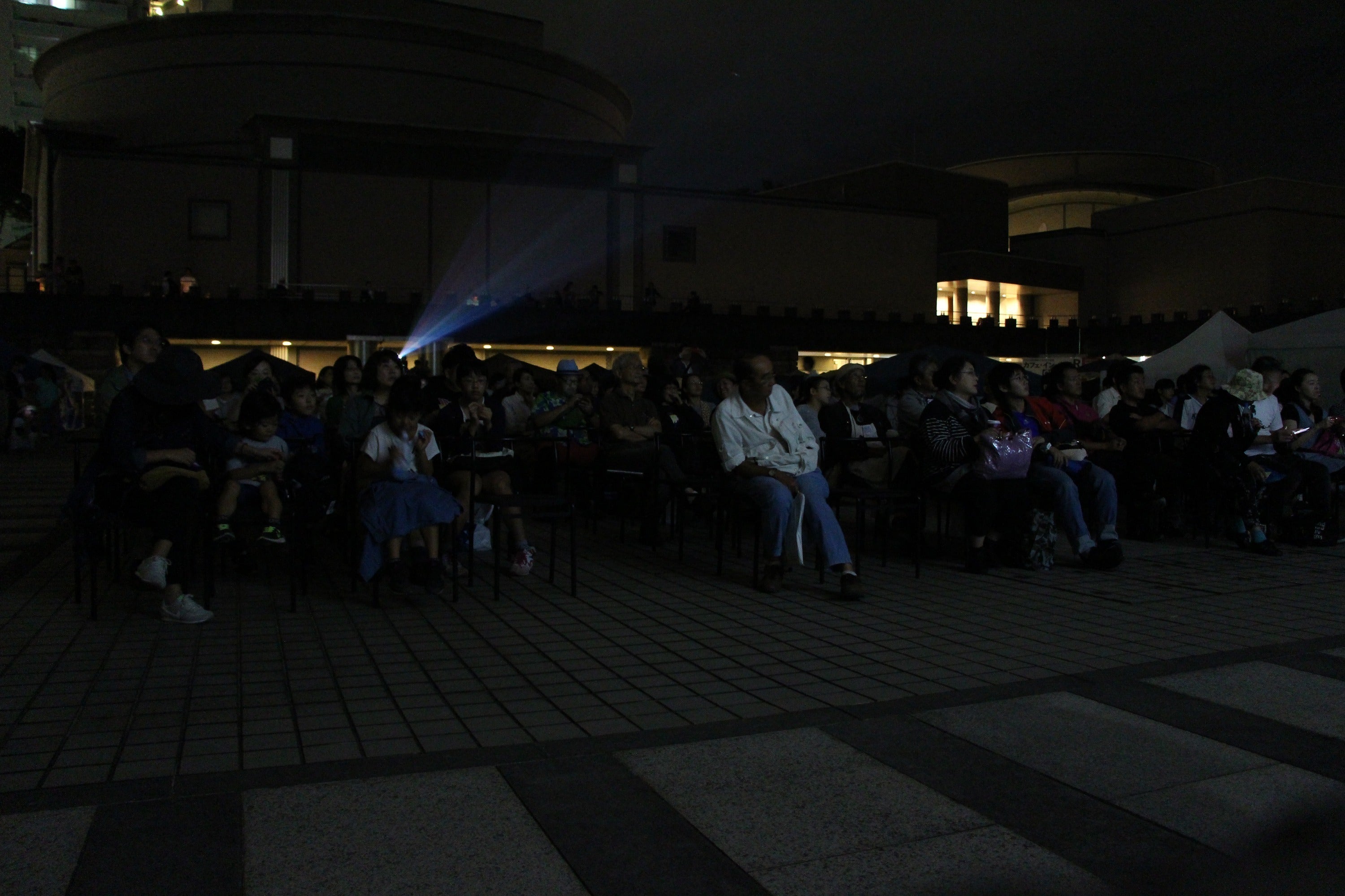 「水戸野外映画上映会」は2012年より毎年9月水戸芸術館広場にて行われている映画の上映会です。芝生の上にシートを敷いたり椅子に座ったりしながら思い思いに映画を楽しめる場をつくっています。子供から大人まで毎年2〜300人程の来場者で賑わい、愛されています。野外でワイワイ映画をみる機会・体験はなかなかないこともあり、毎年この上映会を楽しみにしている方が多くいらっしゃいます。
