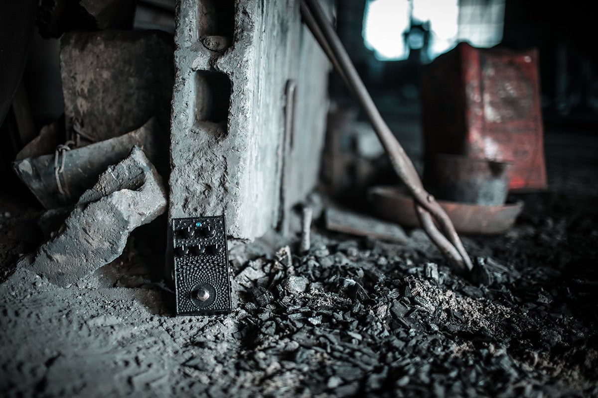 福嶋 圭次郎 1986年12月27日生まれ。神奈川県横浜市出身。中学時代にエフェクターの奥深さに触れ、高校卒業後、エフェクターを製作するために東京電機大学で電子工学を専攻。独自の研究を10年以上に渡って重ね、その研究過程でエフェクターの筐体が音色に影響を与えると着目。新たな素材を探して2019年4月から日本一周の旅へ出る。以前から興味のあった岩手県の南部鉄器工房、株式会社及富へ訪問。鋳鉄への関心を深め南部鉄器エフェクターの開発を決意し、2019年7月から及富と共同開発を始める。