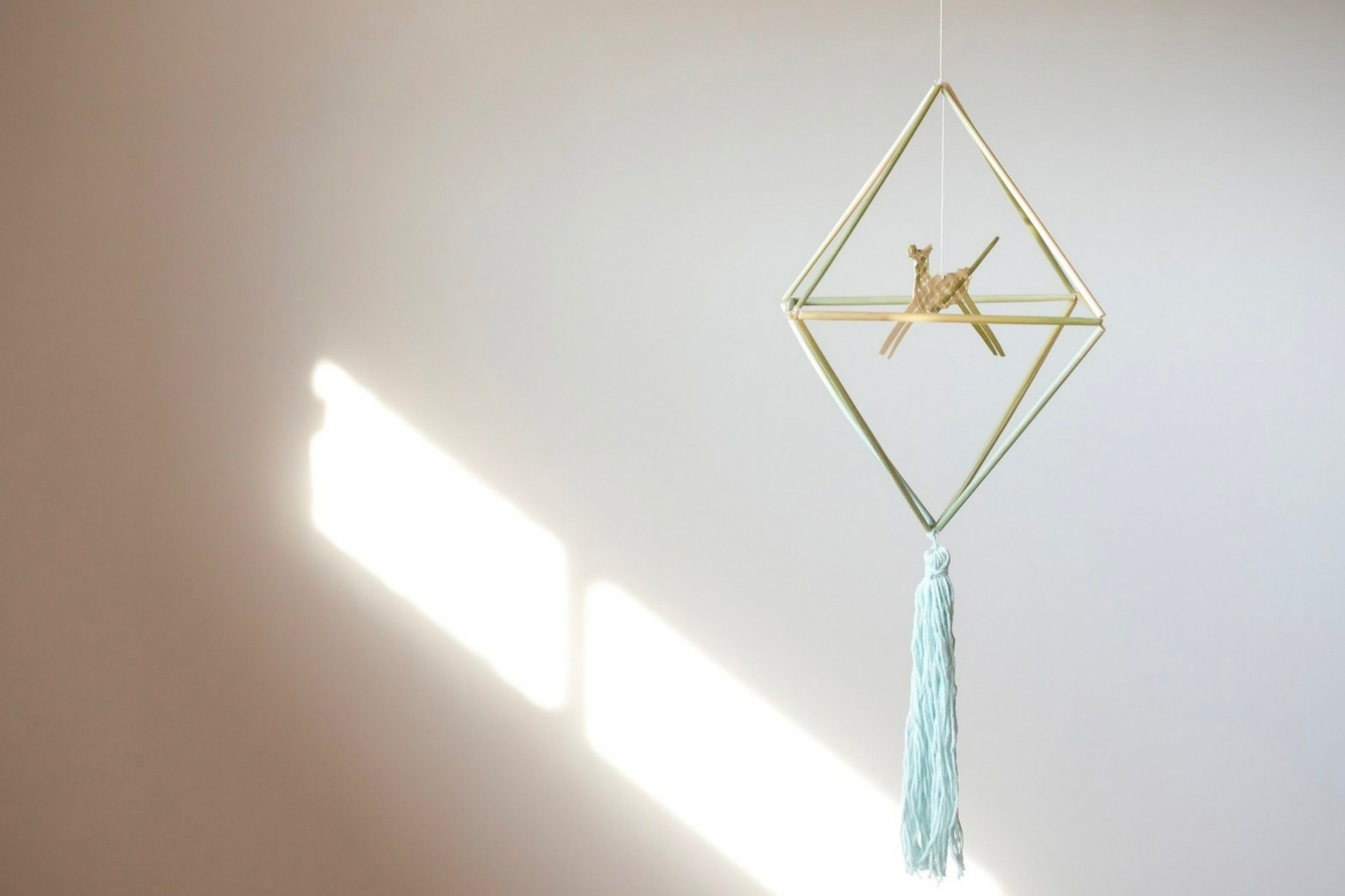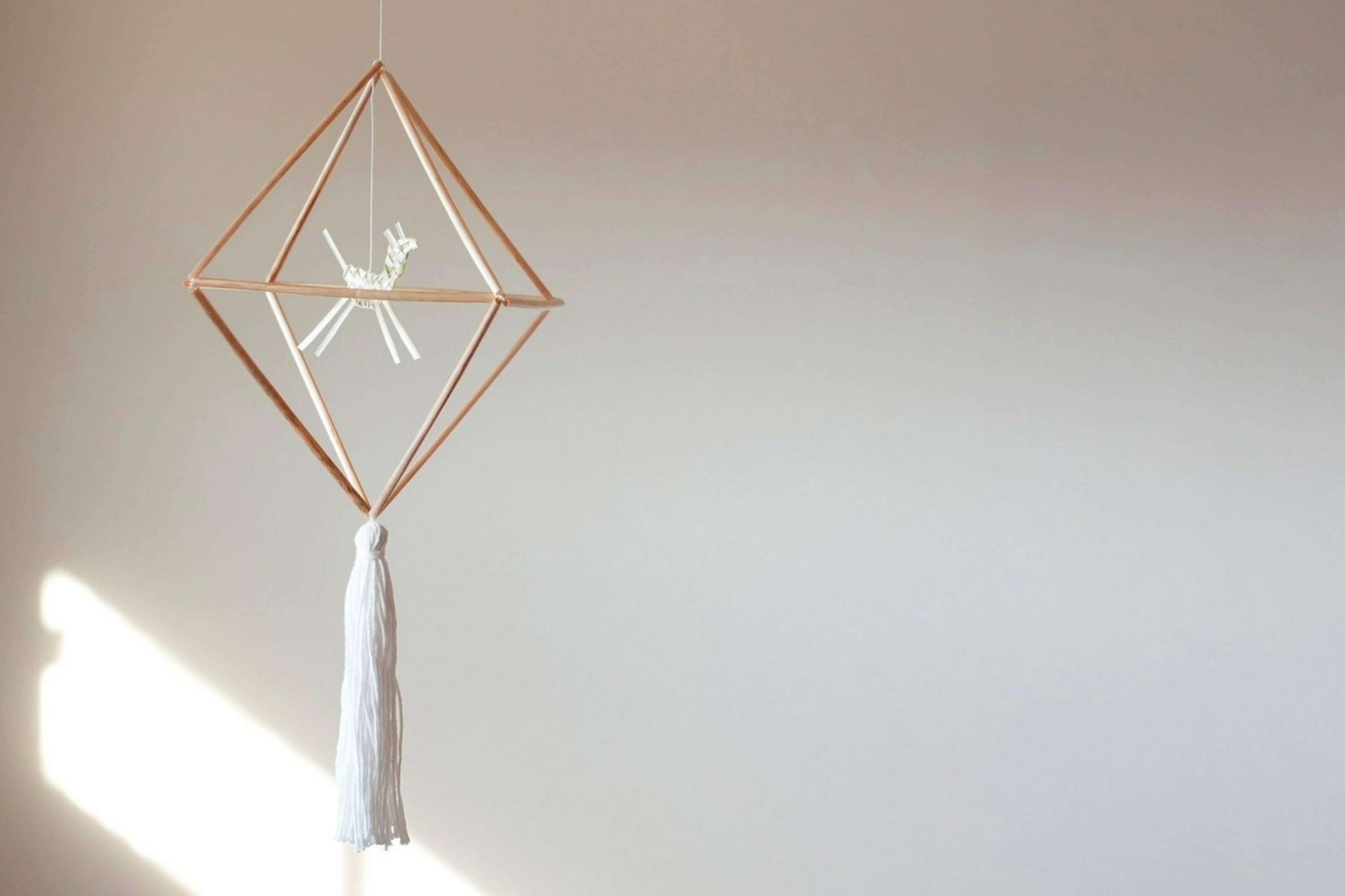 北欧・フィンランドで生まれた、麦わらに糸を通して作る伝統的な装飾品です。幾何学的な形が特徴です。