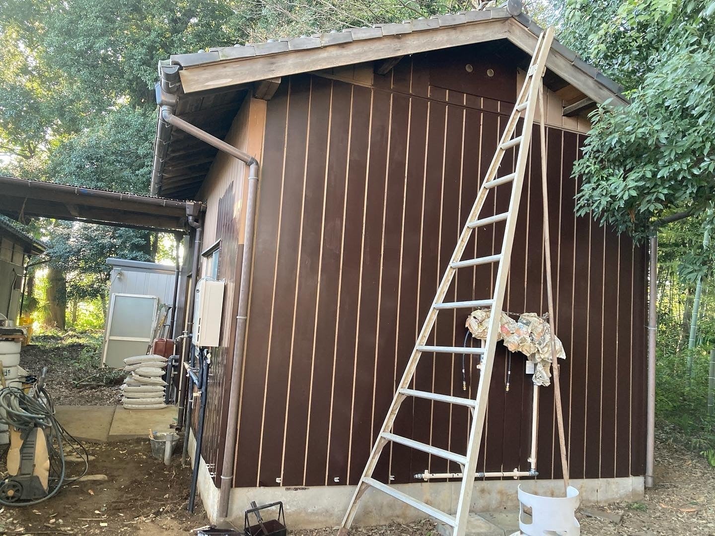 2022/11/20 09:31ご無沙汰のご報告になってしまいましたが、最近の味噌小屋進行状況です○外壁がみちがえりましたっ↓beforeafter美味しそうなチョコレート色に!赤×黄×こげちゃを合わせて理想的な色に仕上がりました。まぜまぜ〜雰囲気もかなり変わりました心強い強力者もあらわれ外壁塗りはスムーズに進みました!ありがとうございます!そしてこちは二層シンク!実はこれ味噌小屋の周りに使われず放り投げられていたものなのです!こんな感じで、、、。ピカピカになりましたゴミはなるべく出さない!を目標に!使えるものは使う精神!こちらはモルタルならし作業。いざ水を流してみると真ん中が盛り上がっていて、角の部分がへこみそこに水が溜まってしまい問題に。見づらいですがこんな感じで。なので自分達で平らに埋め込んでいこう!と思ったのですがこれがなかなか大変で泣笑モルタルの粉と水を混ぜるときはかなりの力作業、、。そして平らにならす作業も果てしなく、、。プロの技は難関でした。全体的に手でやりましたが結局でこぼこで手に負えず。お世話になっている大工さんに聞いたところ、レベラーという流動性のあるモルタルがあるとのこと!これなら勝手に凹んでる部分に流れてくれるから救世主になるかも!とのことでレベラー流しに。おかげさまでとても綺麗にツルツルにピカピカに仕上がりました。水をはくときもつっかからずスムーズにはけることができました!棚もDIYでつけました!大工さんからいただいた化粧べにやと木のコラボレーション!味噌小屋入口からの夕日もとても綺麗。以上、ゆるい進捗情報でした! もっと見る