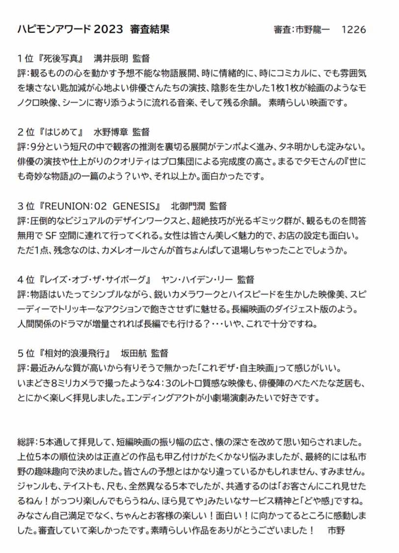 栄誉ある賞をいただきスタッフ・キャスト一同、深く感謝申し上げます。今後も酒場SFシリーズの認知拡大、2024年は海外上映へとチャレンジを続けてまいります。2026年公開を計画中の酒場SF最終章「REUNION:03」にもどうぞご期待ください。