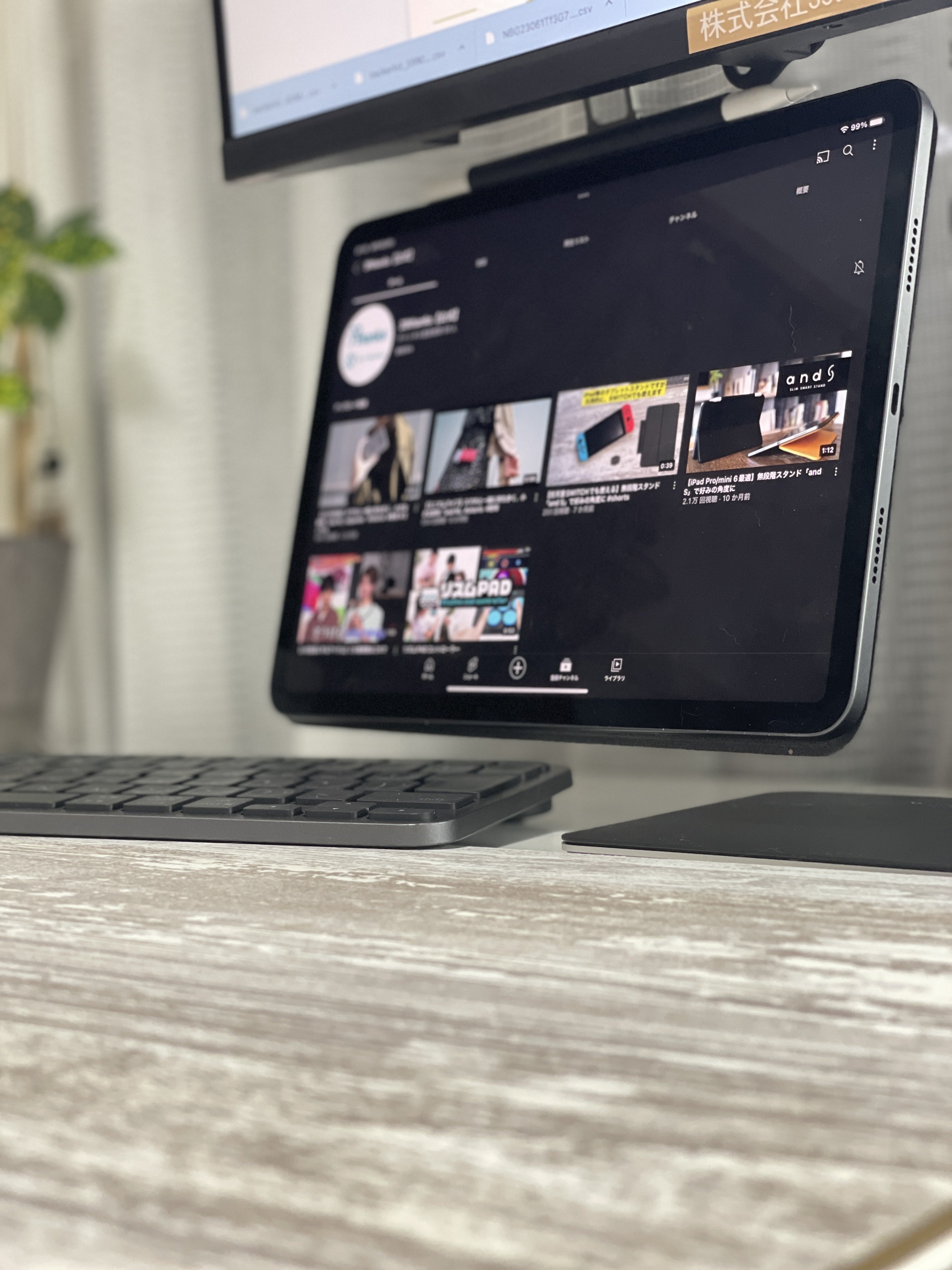 下のiPad Pro 11inchで動画見ながら、日々の仕事を行なっています。