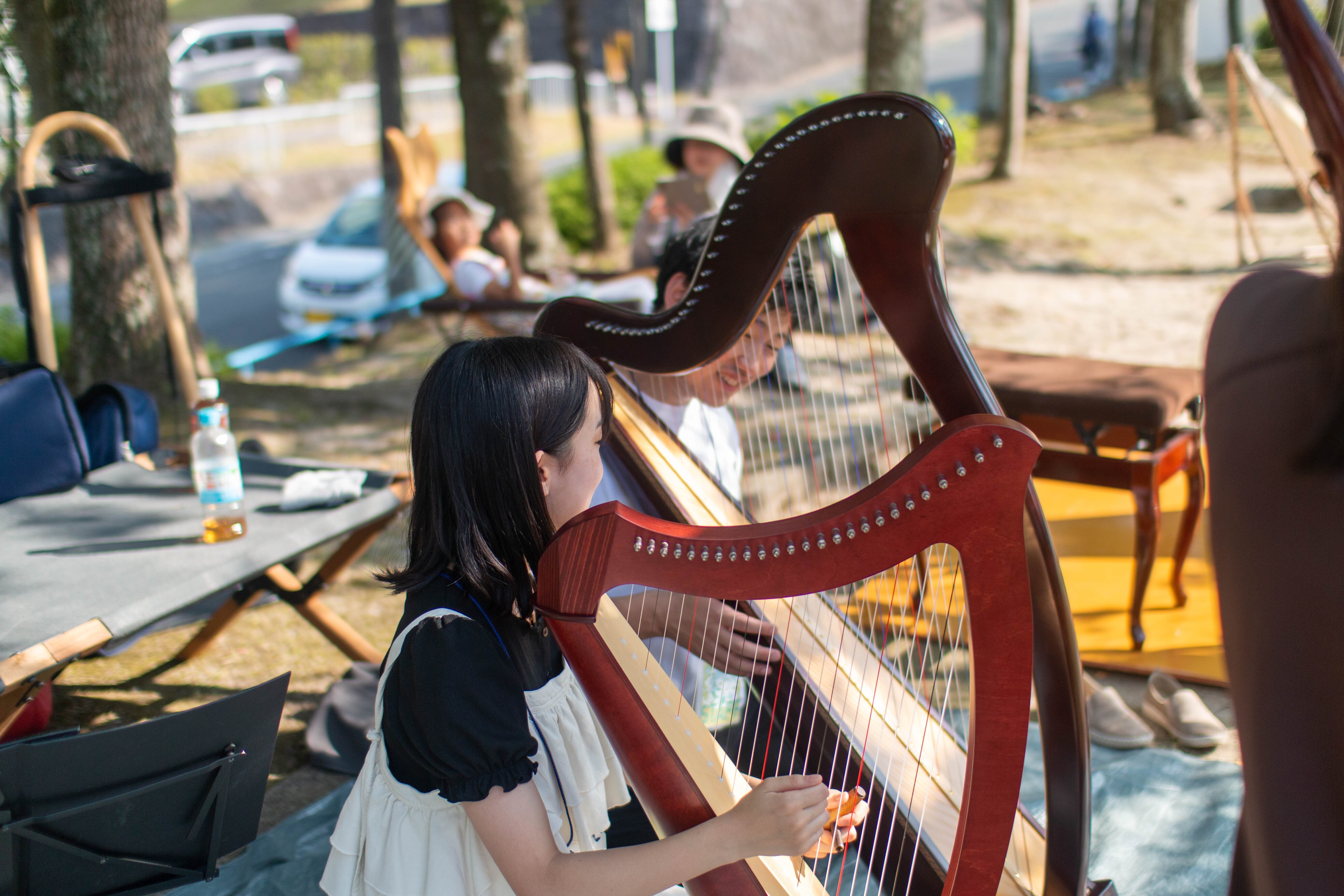 実際に聞いたり演奏体験ができます。初めての方でも楽しめて癒されるハープ教室を目指します!出店者の伝宝は、小学2年からハープを始めました。きっかけは父から勧められたという単純な理由ですが、ハープと過ごしていくうちに段々とハープの魅力に気づき、もっとたくさんの人と共有したいという思いが強くなりました。お店の出店を通じて、ハープを弾くという新しい体験や癒しを届けます🎵