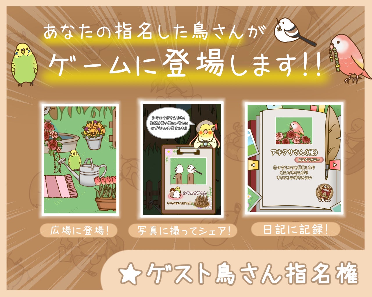 あなたが指名した種類の鳥さんが、ゲーム中に登場!