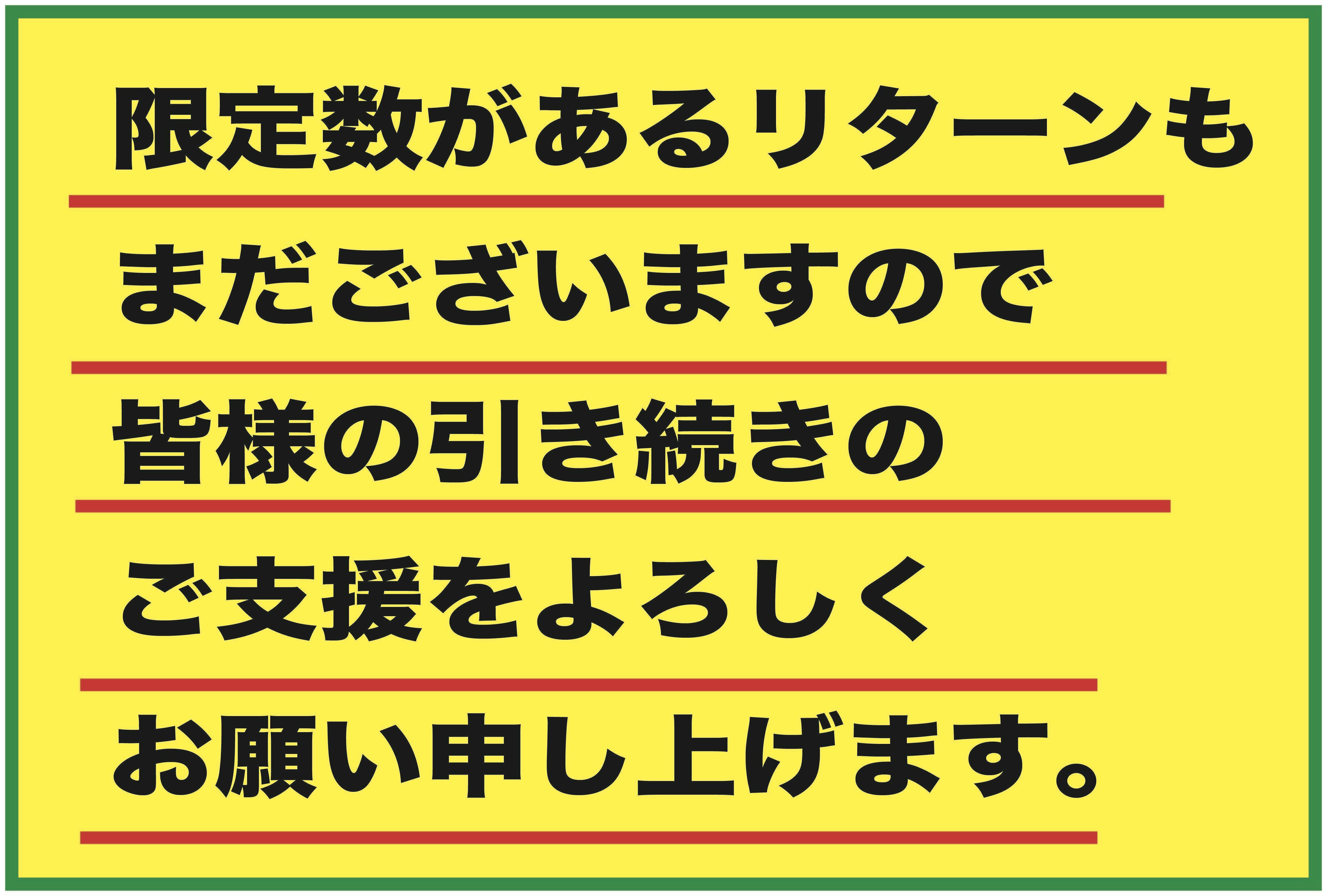 こちら限定数3名様までですので、是非是非ご支援のほど宜しくお願い致します。