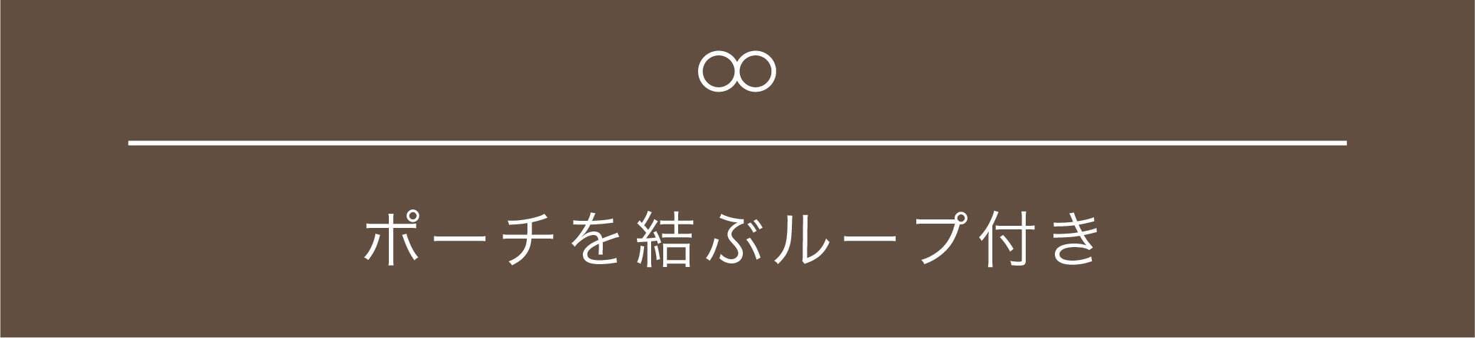 バッグの内側にはループが付いています。このように付属のポーチを付ければ、中にスマホやキーケース等の小物が入れられ、ミニポケットのように使えてとても便利です。ポーチのコードストッパーがあるので簡単に結びつけることができます。