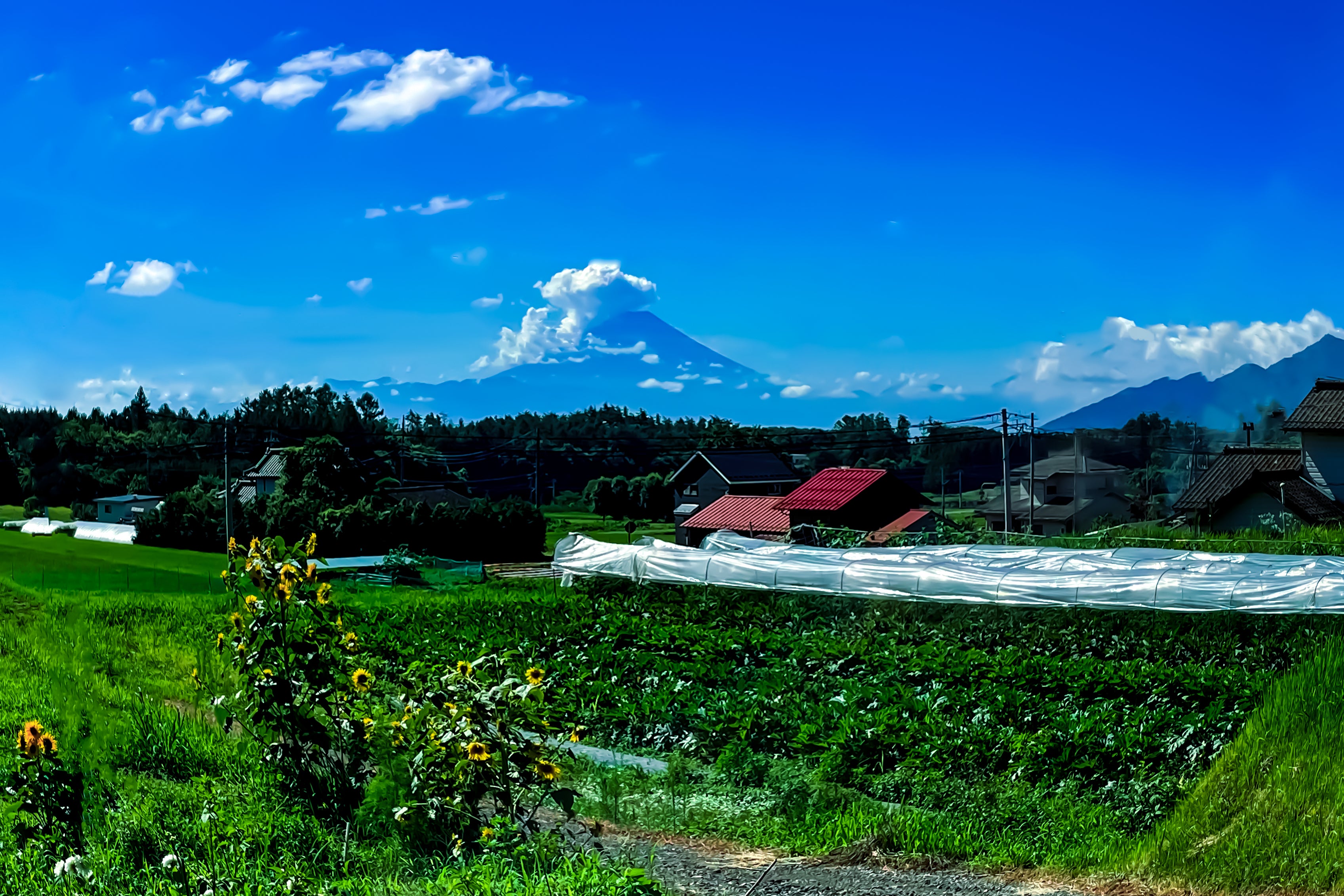 お店の正面には富士山。北側には八ヶ岳。南西側には南アルプスが佇んでいます。そして,日本の原風景を思い起こさせるように広がる田畑。特急あずさが見えることも。