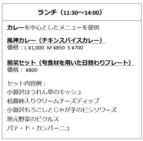 お昼は,カレー屋さんとして営業し,夜は,旬の日替わり食材を使った料理をお楽しみ頂けます!