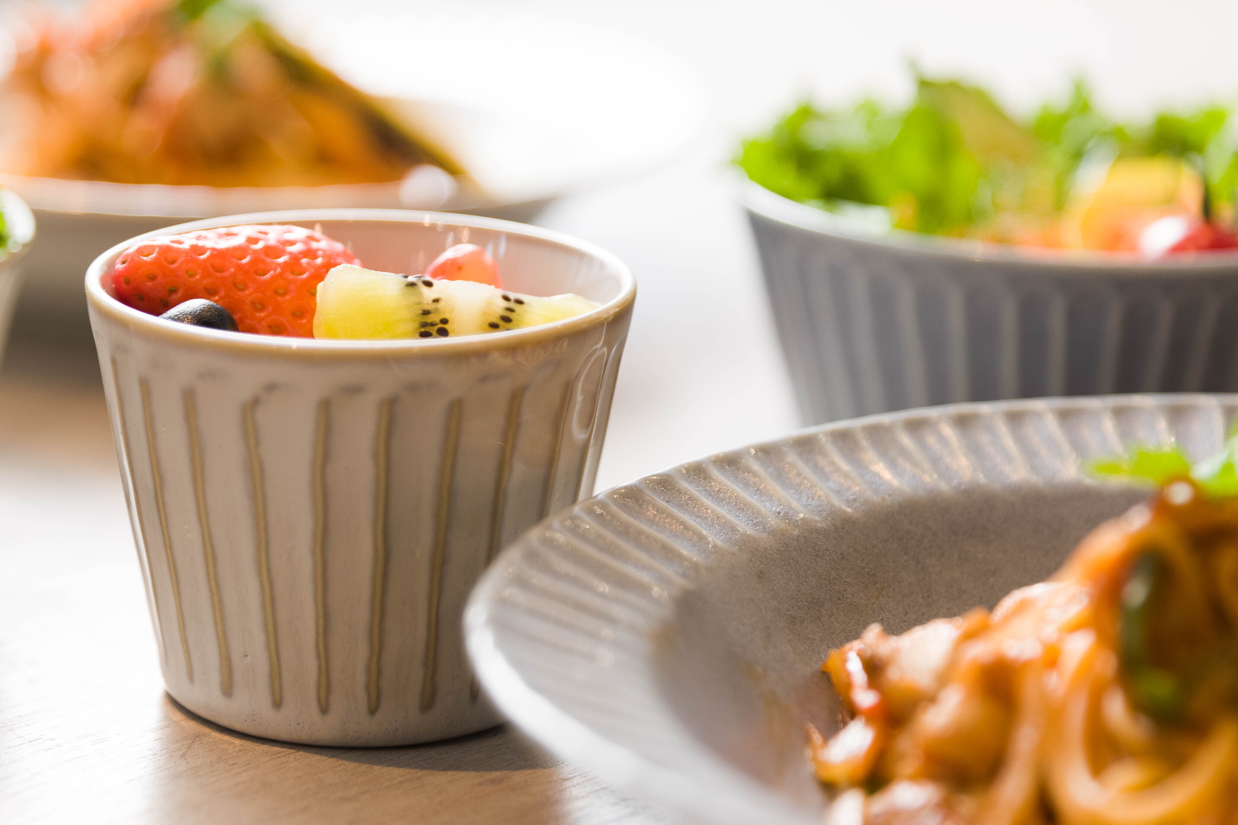美濃焼の器は、その「器だけ」で完成ではありません。お椀にはご飯を。お皿にはおかずを。湯呑にはお茶を。そこに息づく食事としての彩りによって完成するものなのです。