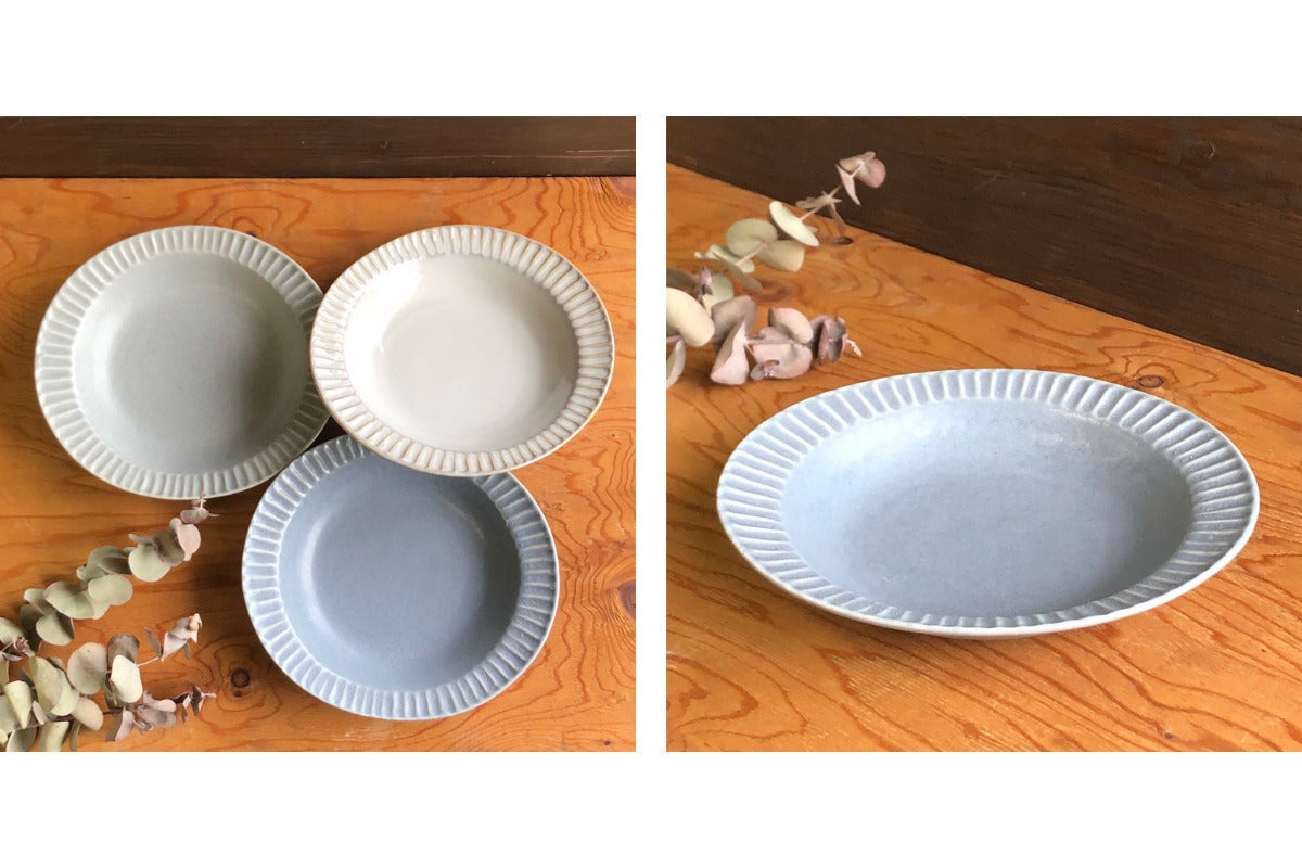 2022/10/15 11:36本日はリターン品をご紹介します。■しのぎパスタ&カレー皿2個セット※ブルーグレー/くすみグレー/窯変ホワイトからお好きな色を2個お選びいただけますしのぎ目付き北欧風のデザインのシックな器 ワンプレート料理にもぴったりで普段使いしやすいサイズです美濃焼/みずなみ焼のシックなカレー&パスタ皿。しのぎ目のある北欧風のデザインで、少し深さのあるオーバルぎみの器です。パスタやカレーといったワンプレート料理にもぴったりで、普段使いしやすいサイズです。--------------------------------------◆color type【ブルーグレー】湖水や雪の降る前の空のようなブルーグレー。しのぎの凸面の釉薬は薄くなり、磁器の白が覗きます。パスタやパンなど小麦の薄い黄色と相性が良く、シンプルな料理も補色で華やかに見せます。表面はマットな質感となっております。【窯変ホワイト】季節により色を変える雲をイメージしたホワイトです。生成りがかったベースに、しのぎの凸面がアイボリーから青みがかったグレーに窯変します。どんな料理にも使いやすい、定番のカラーリング。表面は光沢のある質感となっております。【くすみグレー】スモーキーなくすみカラーで、落ち着いた華やかさと上品さのある色合いです。しのぎの凸面の釉薬は薄くなり、磁器の白が覗きます。表面はマットな質感となっております。※モニター環境により、実際の色味と異なって見える場合がございます。--------------------------------------◆サイズ 22.5×20.7×H4cm(内寸17×16.5cm)◆素材 磁器◆電子レンジ・食洗機対応--------------------------------------◆使用用途カレー / パスタ / シチュー / リゾット / ロコモコ など--------------------------------------■注意事項/その他〈お使いいただくにあたって〉器の原料となる天然鉱物の影響や、窯の中の微妙な温度の変化によって出来上がった製品ひとつひとつが違った風合いを持っています。窯の火による焼き上げとともに収縮していく器の性質上、同じサイズ・カラーのものでも焼き上がりの色の濃淡やムラの有無、天然鉱物の影響で出る黒点、サイズなど、それそれ個体差がある場合がございます。器それぞれの表情は古くから「風合い」や「あじ」として親しまれてきました。ぜひ、これらの「風合い」や「あじ」をお楽しみください。※画像はイメージです。 ■ご支援はこちらから↓https://camp-fire.jp/projects/view/614363 もっと見る