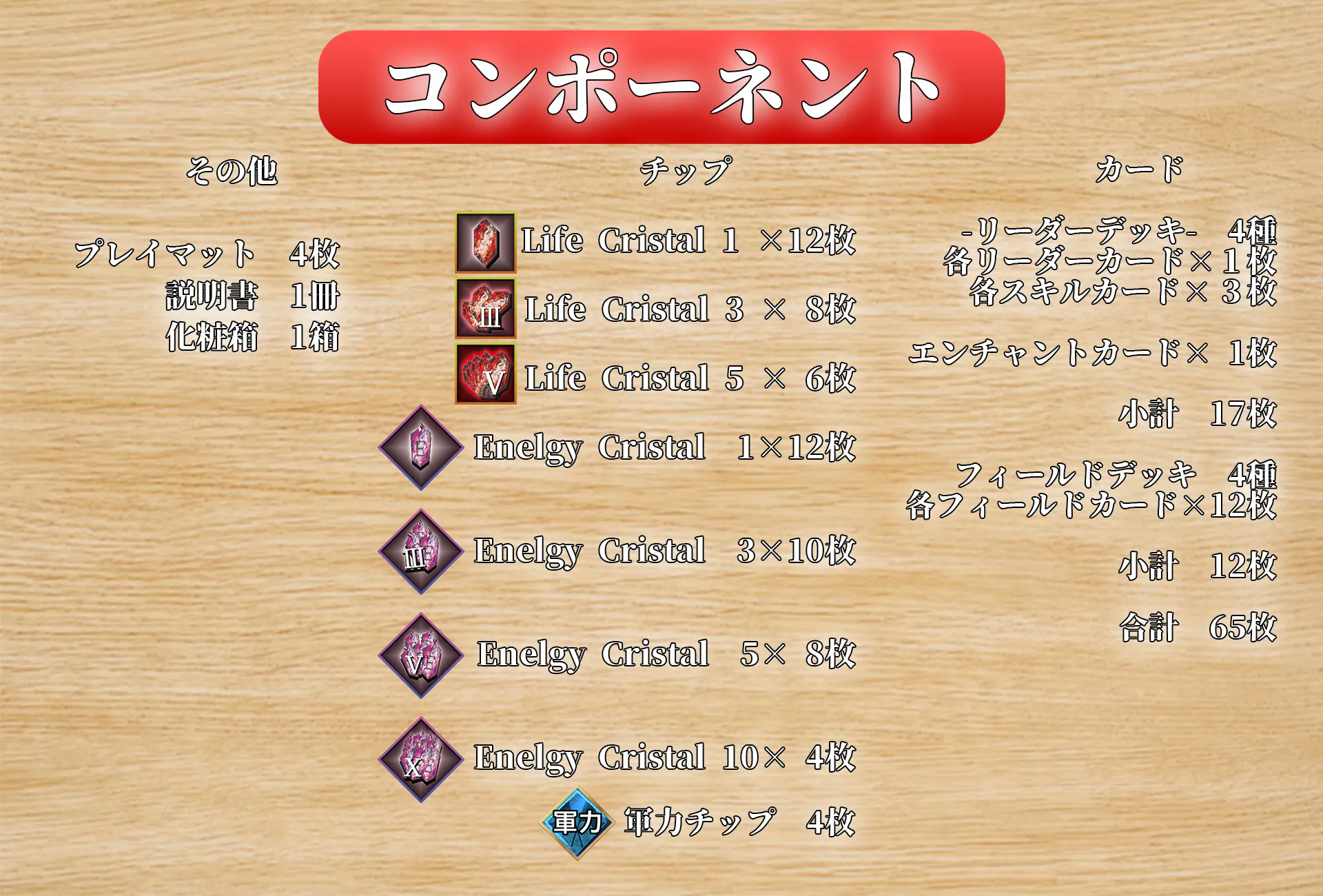 また、拡張として販売予定の新リーダーや新フィールド等を販売する上ではさらに必要となっています。