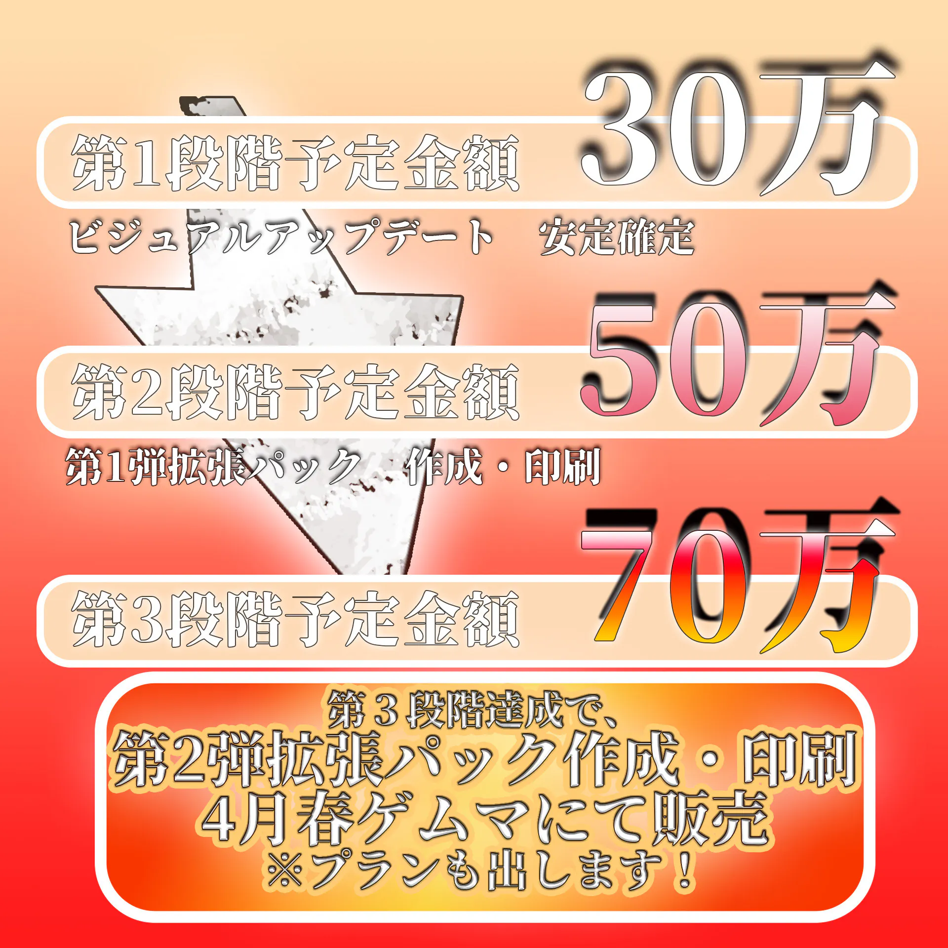 ストレッチゴール最終段階の70万を目指したいと思います。