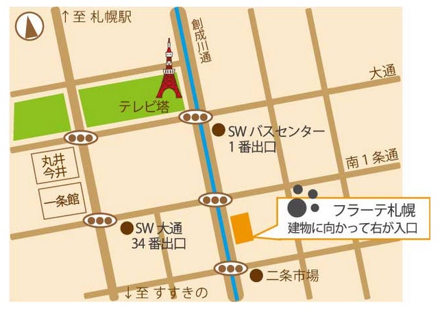 【所在地】:〒060-0052 札幌市中央区南2条東1丁目1-12 フラーテ札幌4F