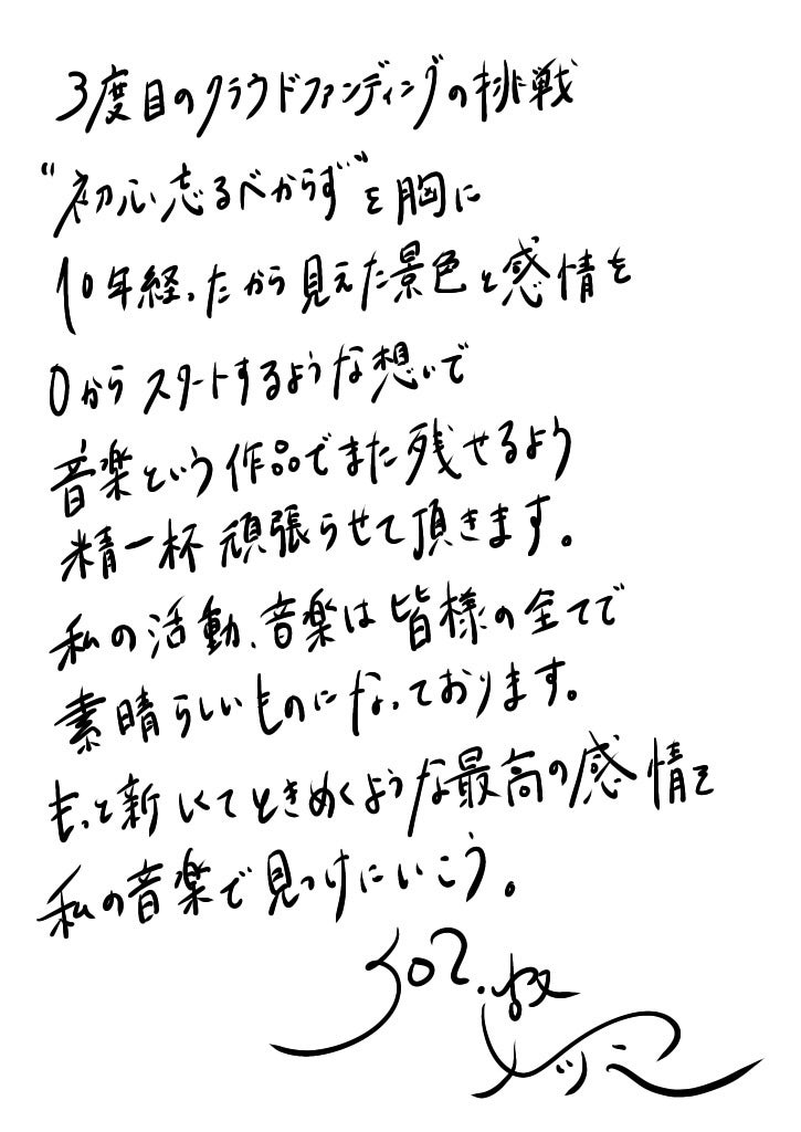 シンガーソングライター活動10周年になる記念にまた1つ素敵な作品を音楽という形で世界に残したいです。