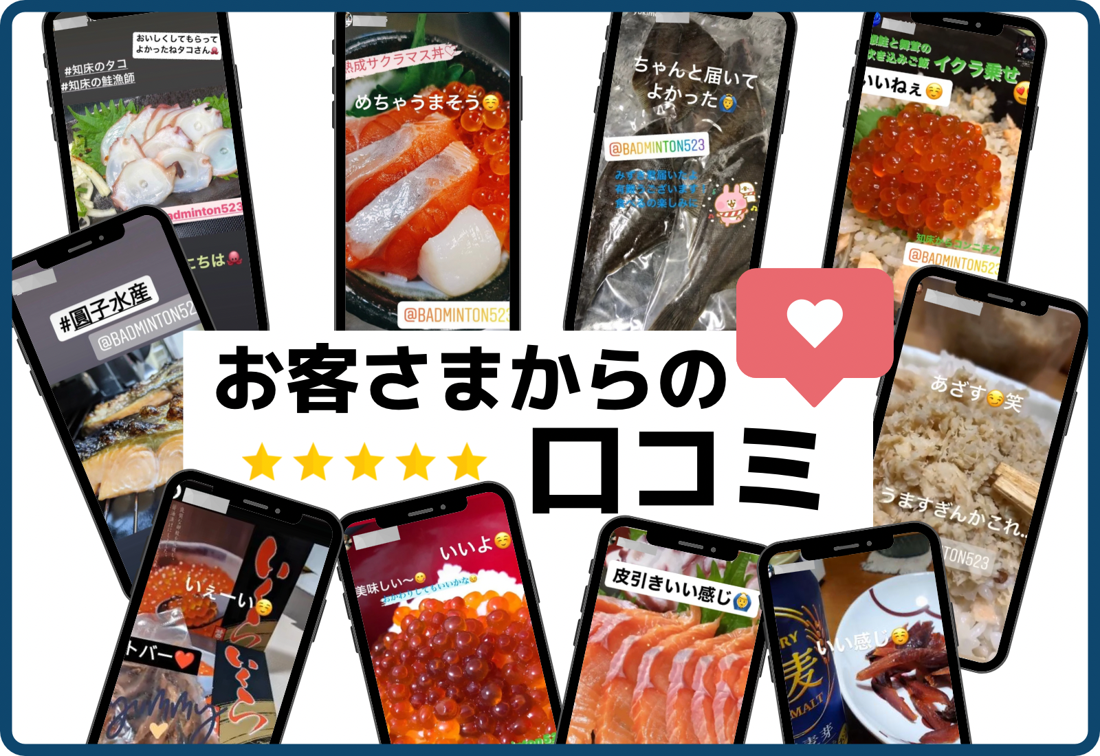 お客様の評価が圓子水産の品質の「証」です!