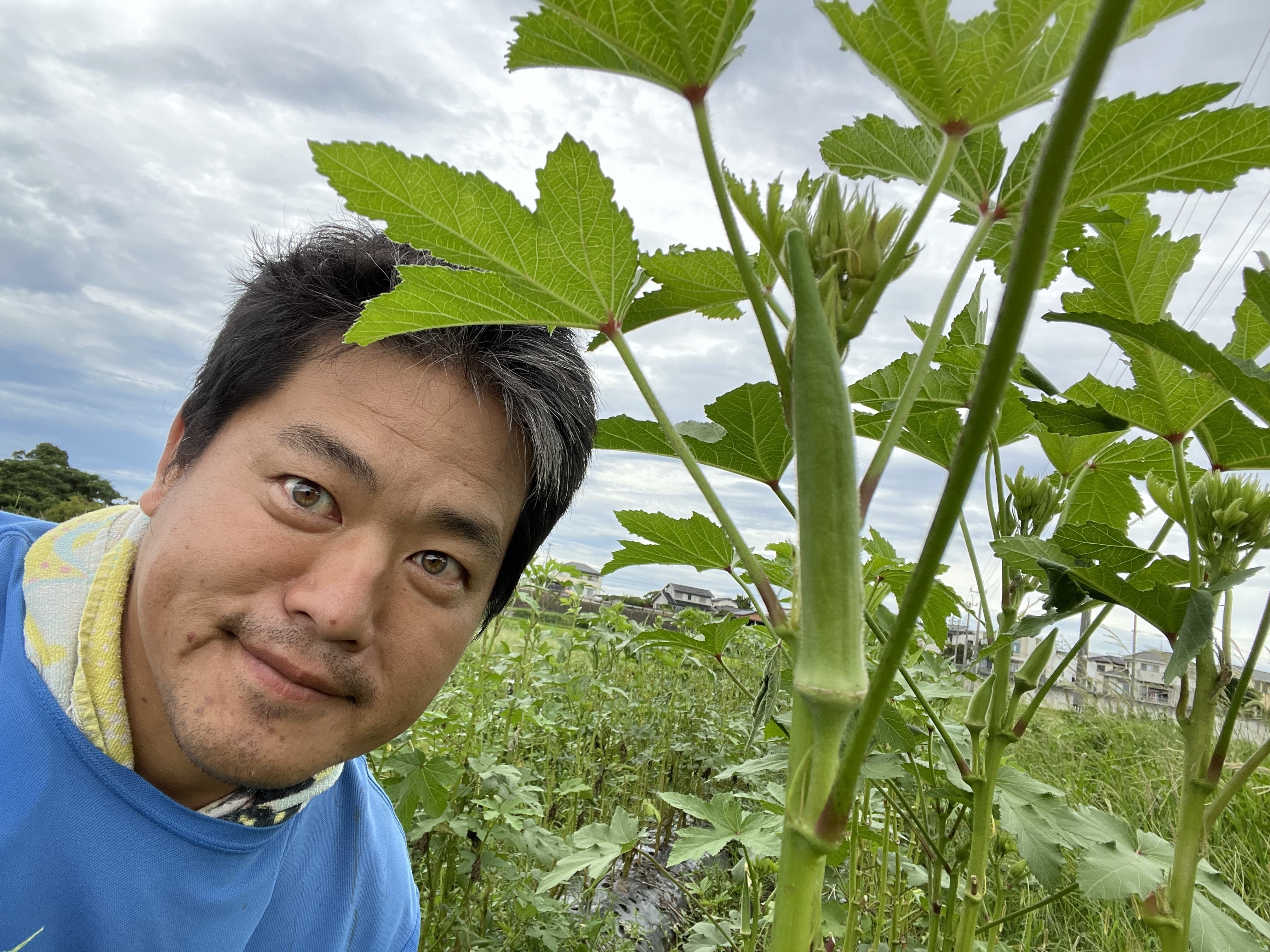 今日は明日の台風最接近に備えて畑の確認と、写真の丸オクラの株の下に、年内収穫予定のスナップエンドウとグリーンピーの種まきをしました!!