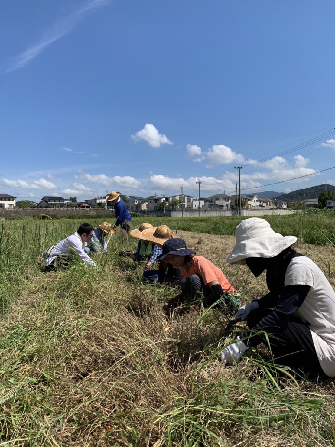 最高気温35℃まで上がる中、畝上の草刈りを鎌でコツコツと。ひとりでやると疲れる作業ですが、皆さんが楽しくサッサとやって頂き本当にありがたいです!!