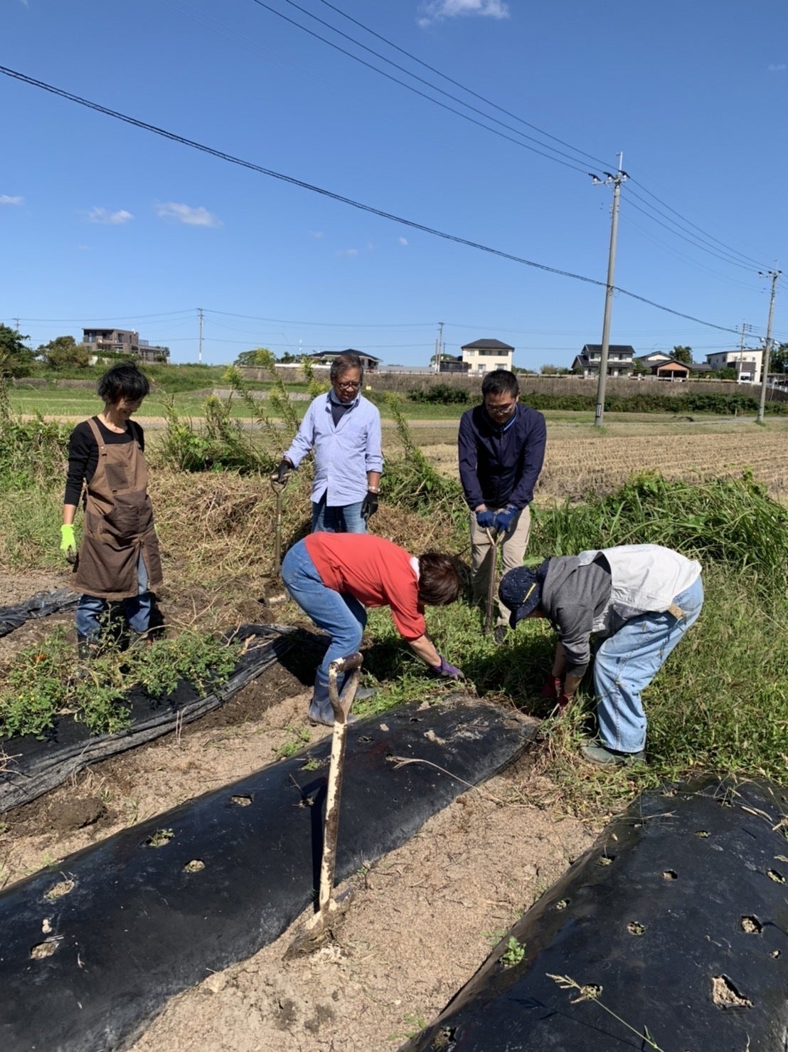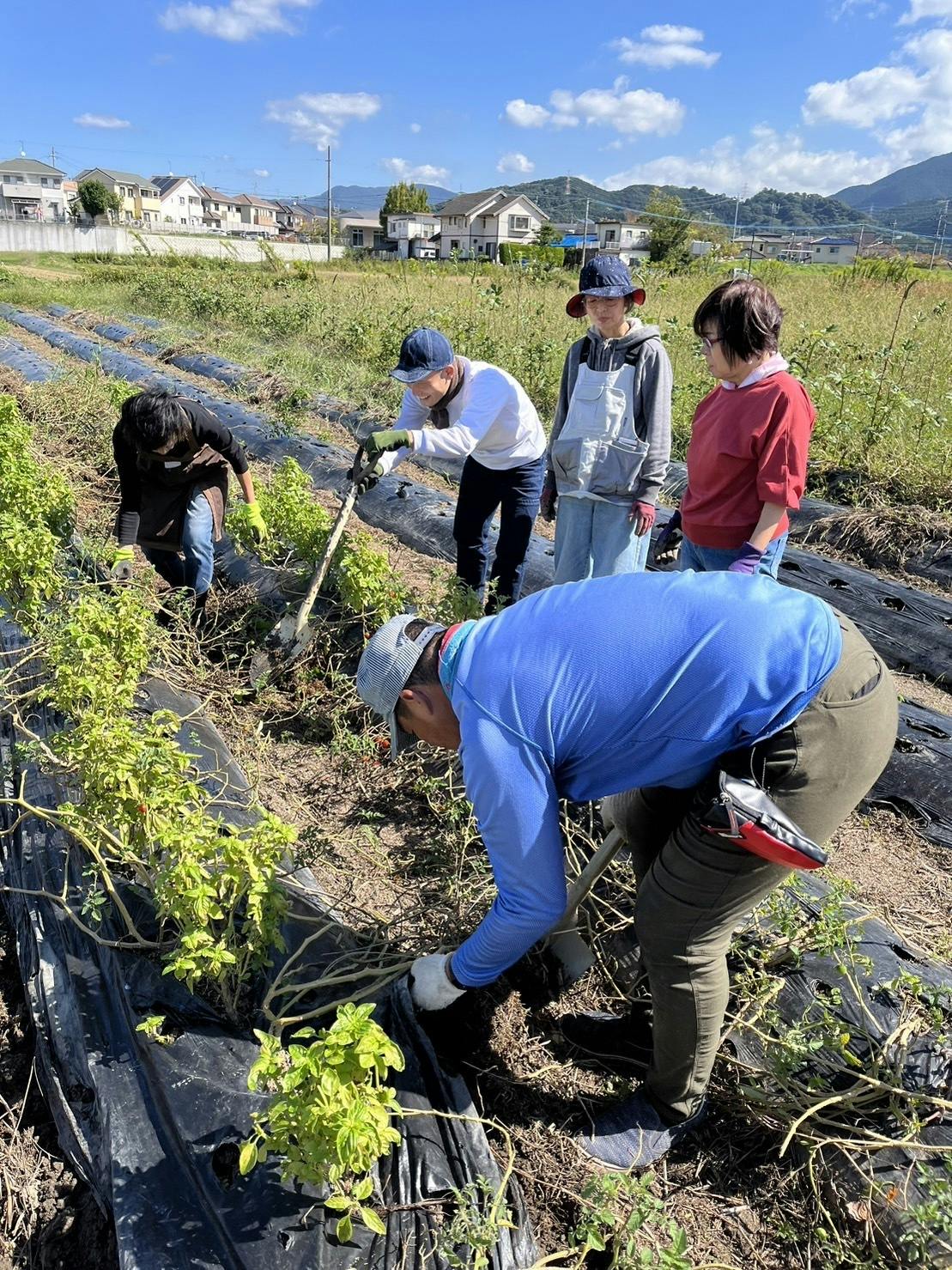 同時に冬やさい、来春のやさいの準備もしています。種まきの前にマルチ剥がし!!たくさんの方々にお手伝い頂きました!