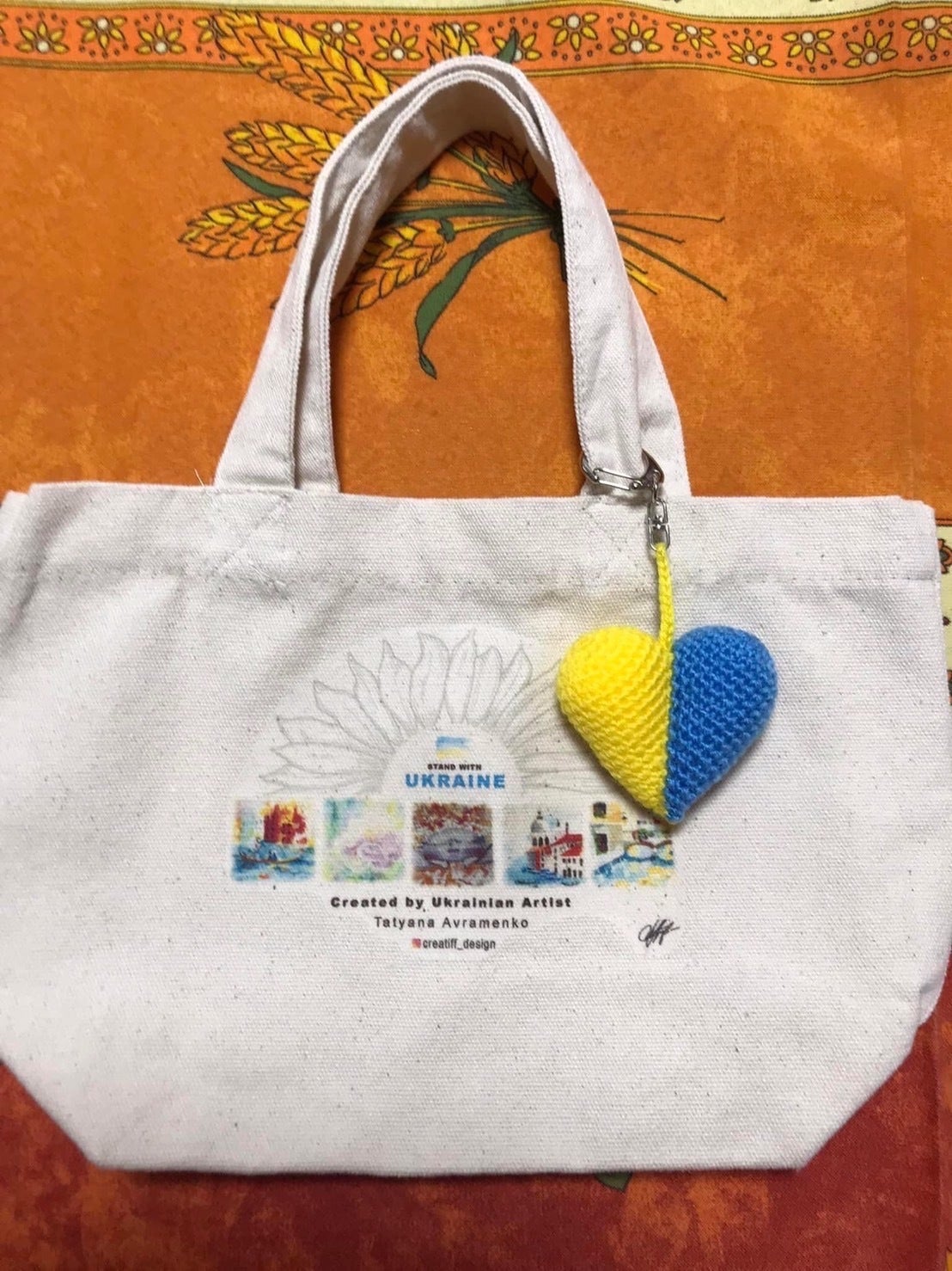 ウクライナ人手作りのウクライナ国旗カラーストラップ