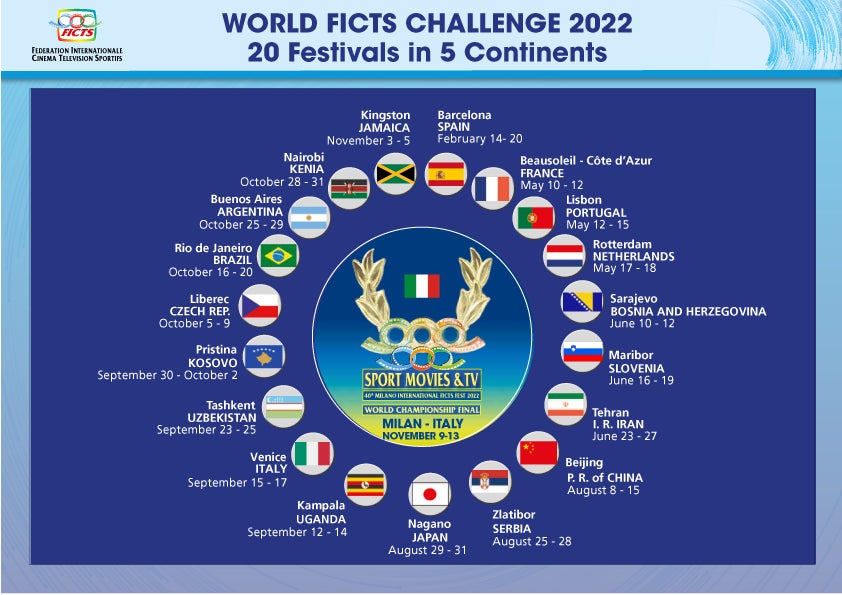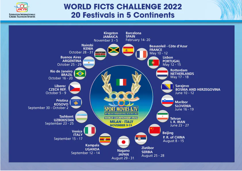 FICTS(Federation Internationale Cinema Television Sportifs)とは、IOC(国際オリンピック委員会)に承認されているミラノに本部のあるイタリアの財団で、現在は世界123カ国がメンバーになっています。そのFICTSは、オリンピックを含む各種スポーツに特化した映画祭『World FICTS Challenge』を毎年、世界各国で開催しており、国際スポーツ映画祭とワークショップを通じて、スポーツ文化とオリンピック精神を広めています。