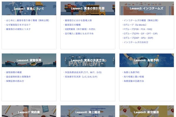・全45カリキュラムからなる貿易コンテンツをご利用可能