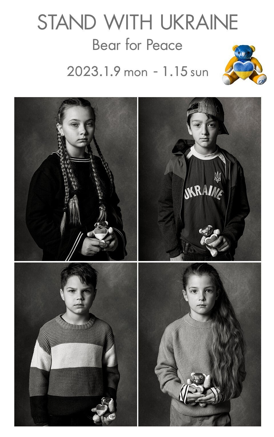 【スタージュエリーの「BEAR FOR PEACE」追加企画のお知らせです】家族が離れ離れとなり、ウクライナからの避難を余儀なくされた子どもたちの眼差し。PEACEへの想いを込めたテディベアを抱いた子どもたちを、写真家 宮本直孝氏が撮り下ろし、表参道駅のコンコースにて21名の子どもたちのポートレートを掲出いたします。子どもたちの表情に潜むたくさんの想いを、ウクライナの今を、感じてください。==========期間:2023年1月9日(月・祝)~1月15日(日)場所:東京メトロ表参道駅コンコース B1出口付近(骨董通り方面)==========撮影は11月20日、27日の2日に渡り行われました。ウクライナ人コミュニティのネットワークにより募集をし、東京都内・神奈川・埼玉・千葉そして山梨から集まってくれた15家族による1歳~13歳の21名の子どもたち。等身大以上のサイズ感で、凛とした表情、真っすぐな眼差しに圧倒されるはず。いま極寒の季節に電気や水も行き渡らないウクライナ。2月には侵攻から1年となる中で、子どもたちからのメッセージを体感いただけましたら幸いです。「BEAR FOR PEACE - STAND WITH UKRAINE」取り組み詳細はこちら(本件について東京メトロおよび駅係員へのお問い合わせはご遠慮ください)