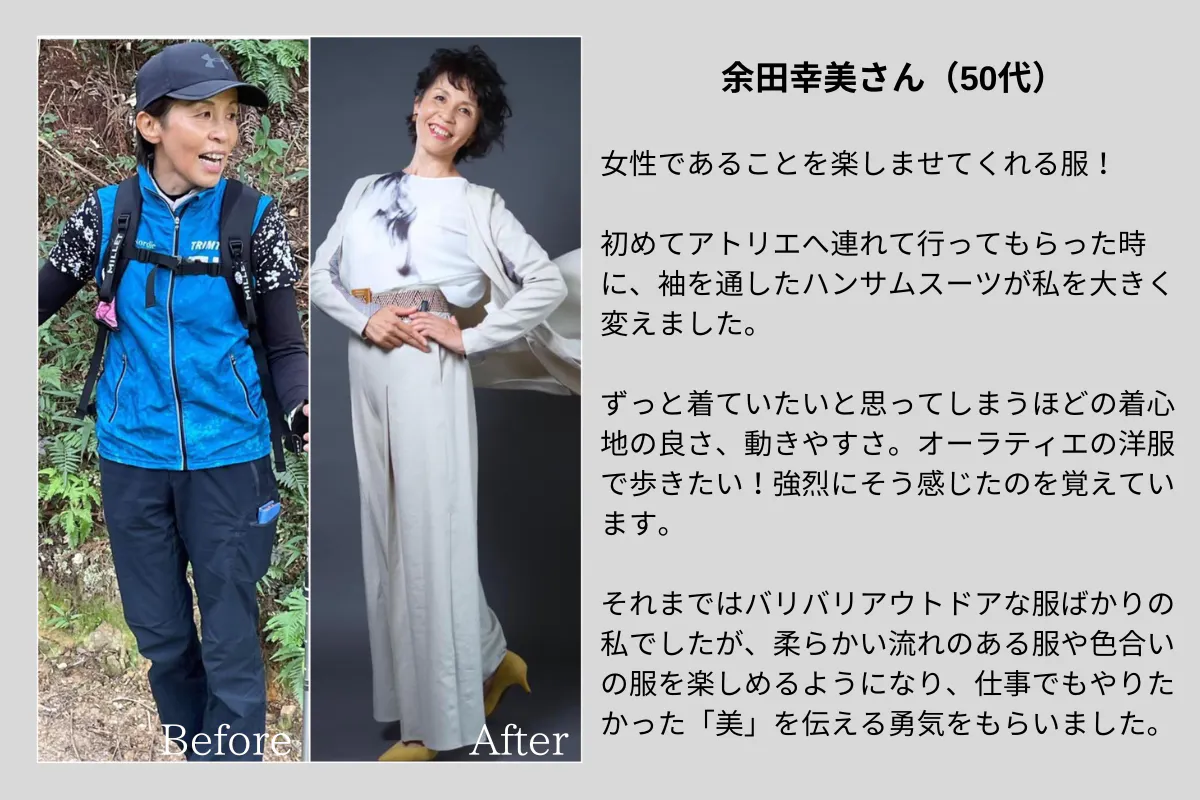 私がスタイリストとしてやりたいと思ったのは、ただ似合う服やコーディネートをお伝えするというものではなく、ファッションを通じて、お客さまの人生をブランディングすることでした。
