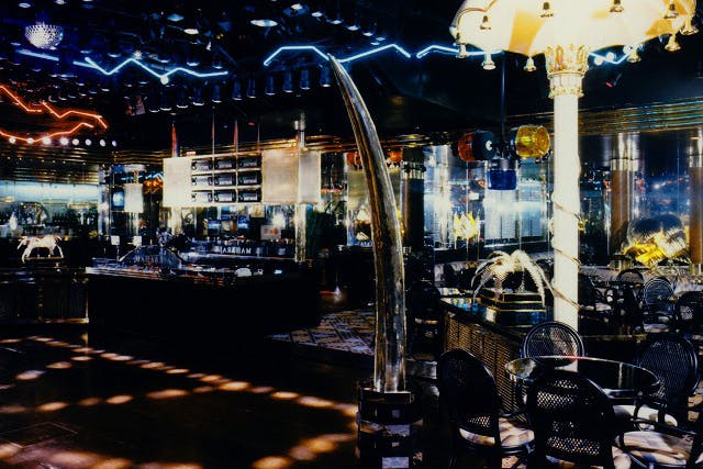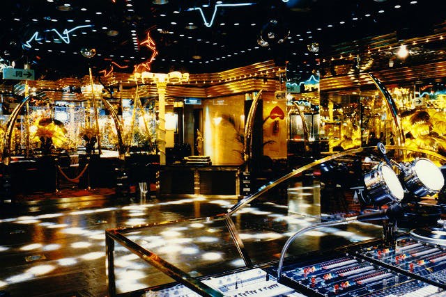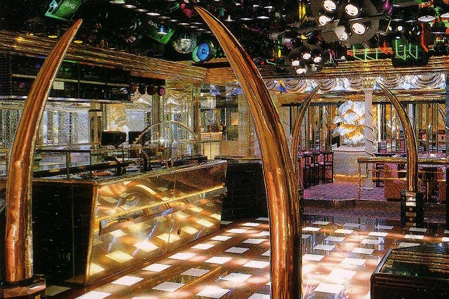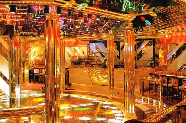 全国で社会現象とまでなったマハラジャシンドローム。その記念すべき第一号店はミナミにある「大阪マハラジャ」です。お店のつくりはダンスフロアが広くお馴染みのオブジェも揃っています。