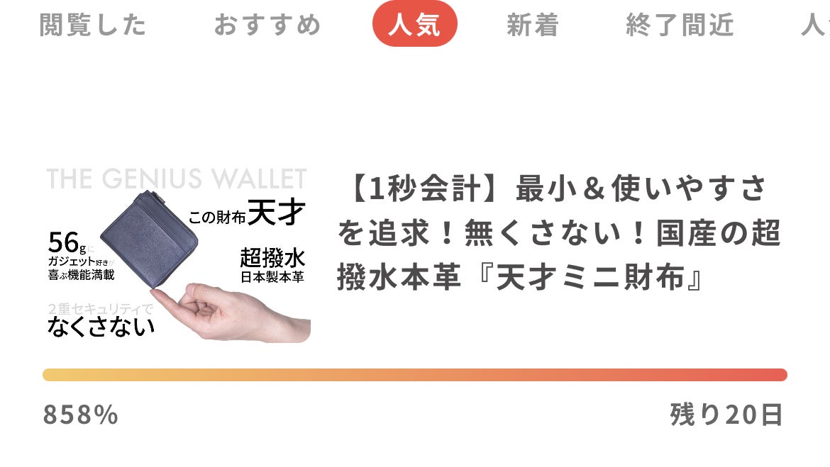 その甲斐あって、CAMPFIREさんの人気プロダクトにも掲載していただいております。