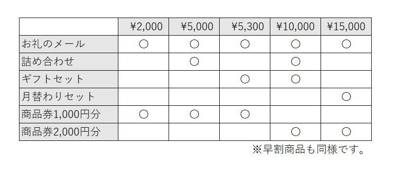 すべてのリターンにてアンケートに回答し頂いた方にはECサイトで使える商品券千円分を追加で提供させていただきます。
