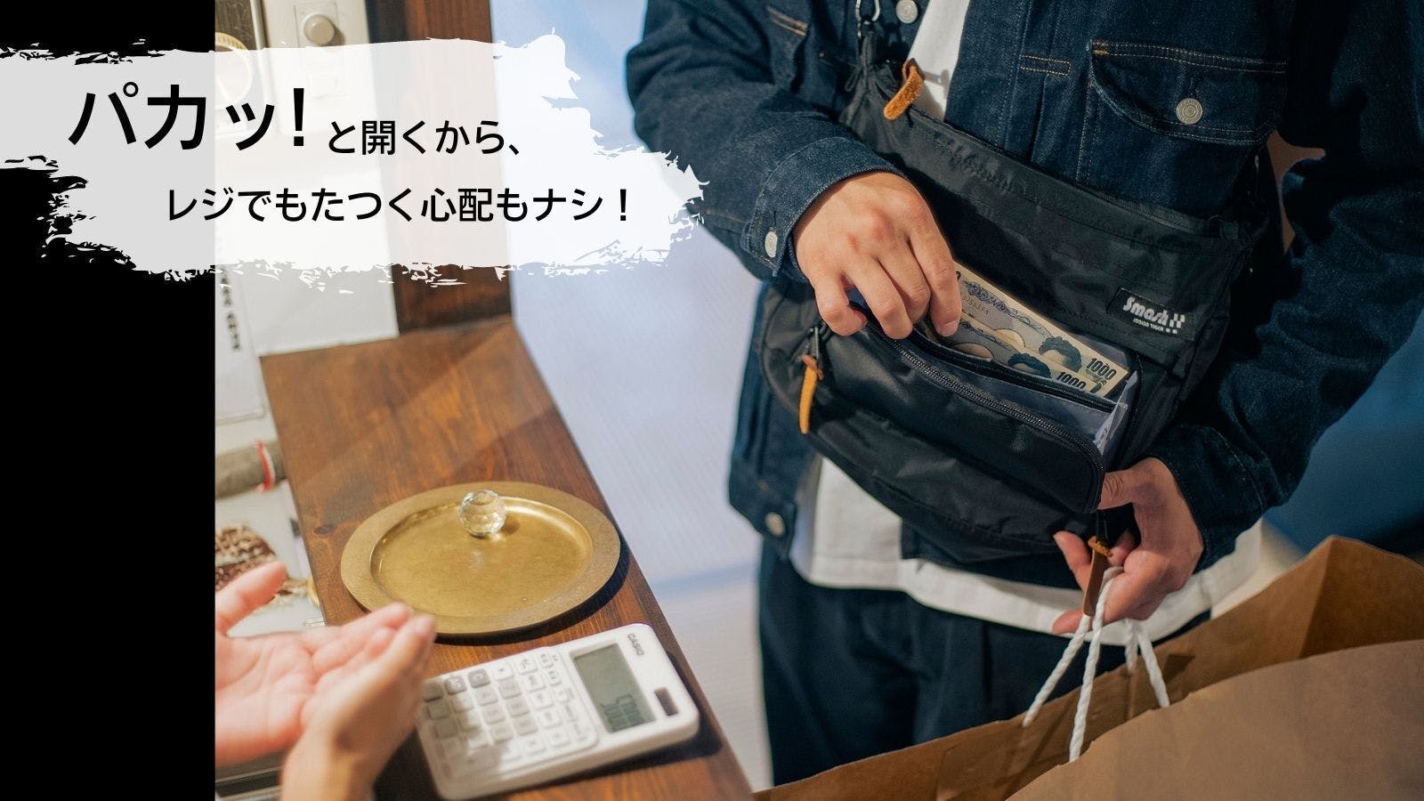 【SmashBag(スマッシュバッグ)】のフロントポケットは、 なんとお財布としても使える仕様になっているんです!