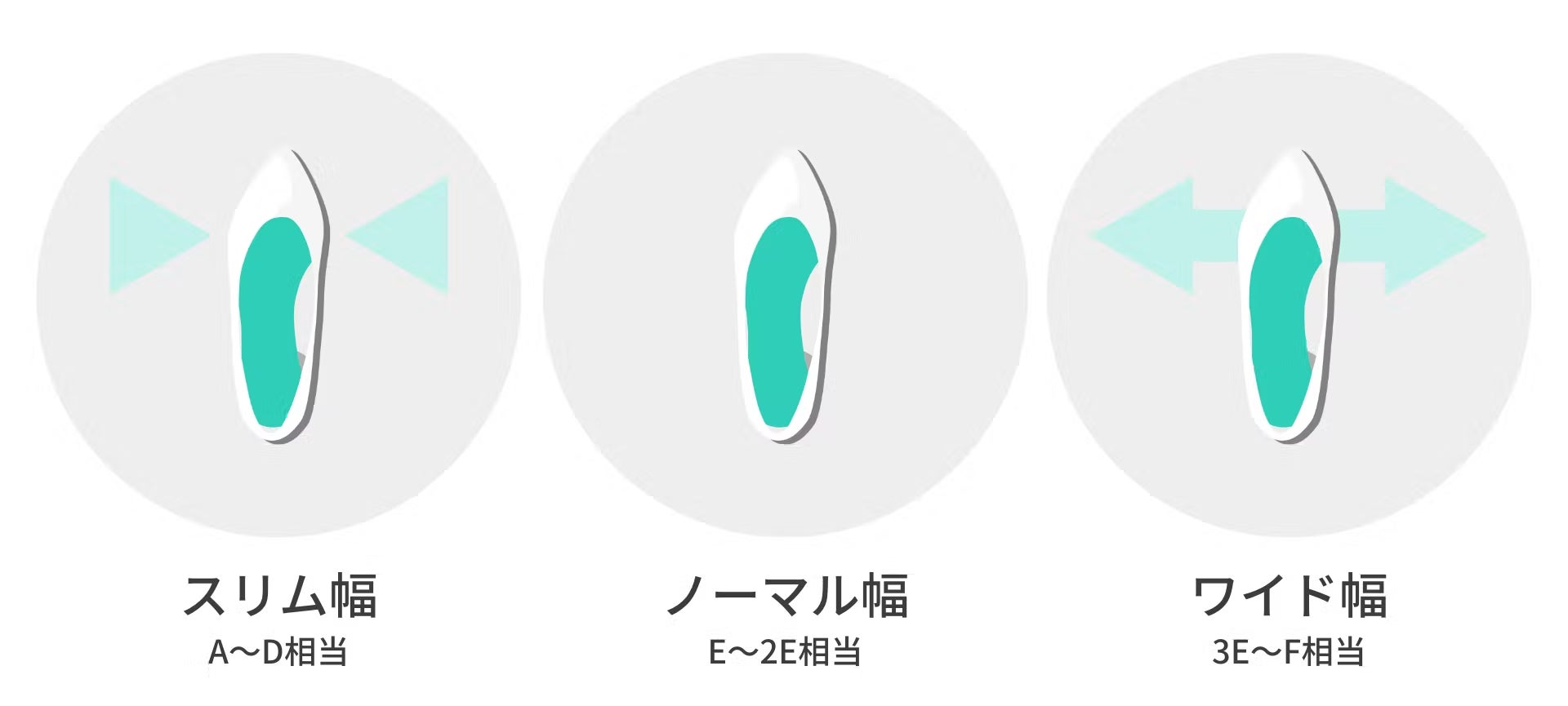 足長サイズだけでなく、「スリム幅」「ノーマル幅」「ワイド幅」の3種類の足幅から自分好みの履き心地を選べます。
