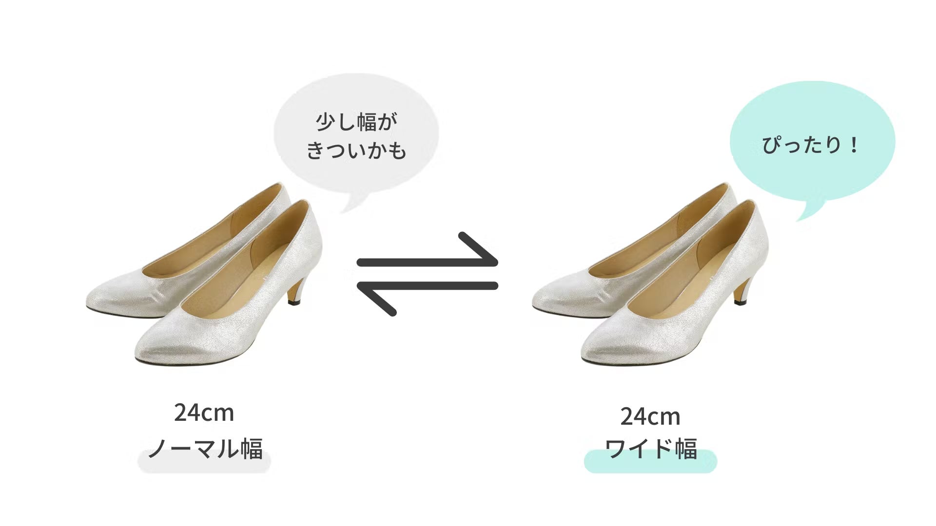 「足のサイズは大きいのに、幅が狭くてかかとがパカパカしちゃう…」など、足長サイズだけでは対応できないというお悩みも、An idealでは解決することができます。