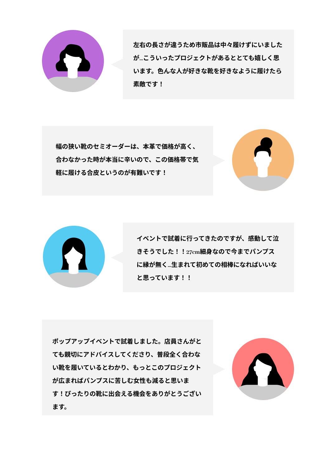 一人でも多くの方が自分にぴったりなパンプスに出会えるよう、私たちはこれからも精一杯取り組んでいきます。